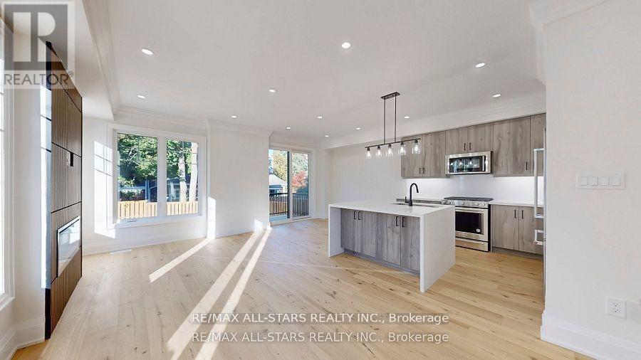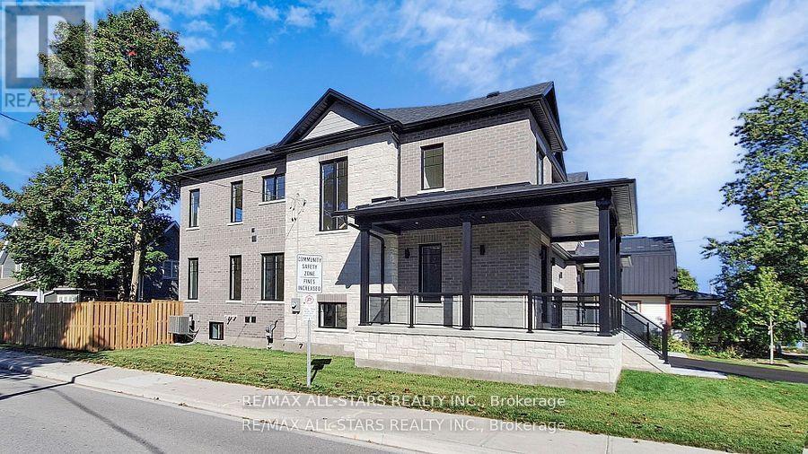 Brand new and beautifully finished, this custom-built freehold semi-detached home by highly ranked Tarion builder Coral Creek Homes offers approximately 2,400 sq ft of thoughtfully designed living space, including a fully finished basement with above-grade windows, quality carpet and underpad, spacious recreation area, 3-piece bath and ample storage. The maintenance-free brick and stone exterior is complemented by a paved driveway, sodded yard and 6' pressure-treated rear privacy fence. Enjoy the wraparound front porch with tinted glass railing or entertain from the kitchen walkout to the rear deck with direct BBQ gas line. Inside, 9' smooth ceilings on the main and upper floors, 7 3/4" engineered hardwood and large-format porcelain tile create a refined feel throughout. The upgraded trim package features 7" baseboards, 3" casings, 7' doors and impressive 7" crown molding on the main floor, upper hall and primary bedroom. Oak stairs with black steel pickets and stained wood caps add architectural flair, while matte black hardware, upgraded black fixtures and LED pot lights enhance the modern aesthetic. The family room showcases a dramatic feature wall with 42" electric fireplace and TV wiring. Upstairs offers three bedrooms including a stunning primary suite with hardwood, large corner windows, walk-in closet with professional organizer and luxurious 5-piece ensuite. The second-floor laundry includes LG side-by-side washer and dryer, quartz folding counter, upper cabinetry, stainless sink and porcelain tile. The designer kitchen overlooks the family and dining areas and features a quartz waterfall island with undermount sink, subway tile backsplash, valence lighting, soft-close cabinetry and quality KitchenAid appliances. Ideally located close to schools, parks, Uxpool, the Curling Club and downtown shopping, and backed by a 7-year Tarion New Home Warranty, this home delivers style, comfort and peace of mind. (42168920)
