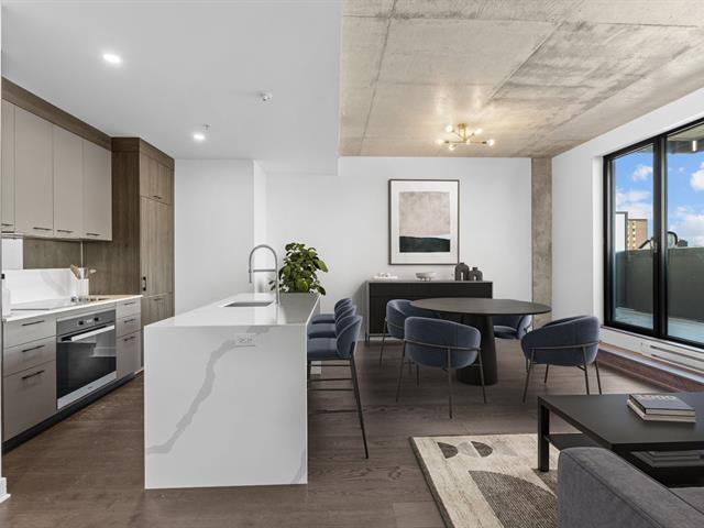 **Large modern condo with breathtaking city views -- 2 bedrooms, 2 bathrooms, large private terrace, and high-end amenities** Located on the 8th floor of a contemporary building in the vibrant Ville-Marie district, this superb open-concept condo captivates with its generous space, exceptional brightness, and panoramic city views. Within walking distance of the Papineau and Beaudry metro stations, numerous parks (including one adjacent to the building), as well as downtown shops, restaurants, and amenities, it offers a dynamic and convenient urban lifestyle. (42980687)