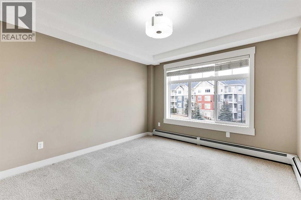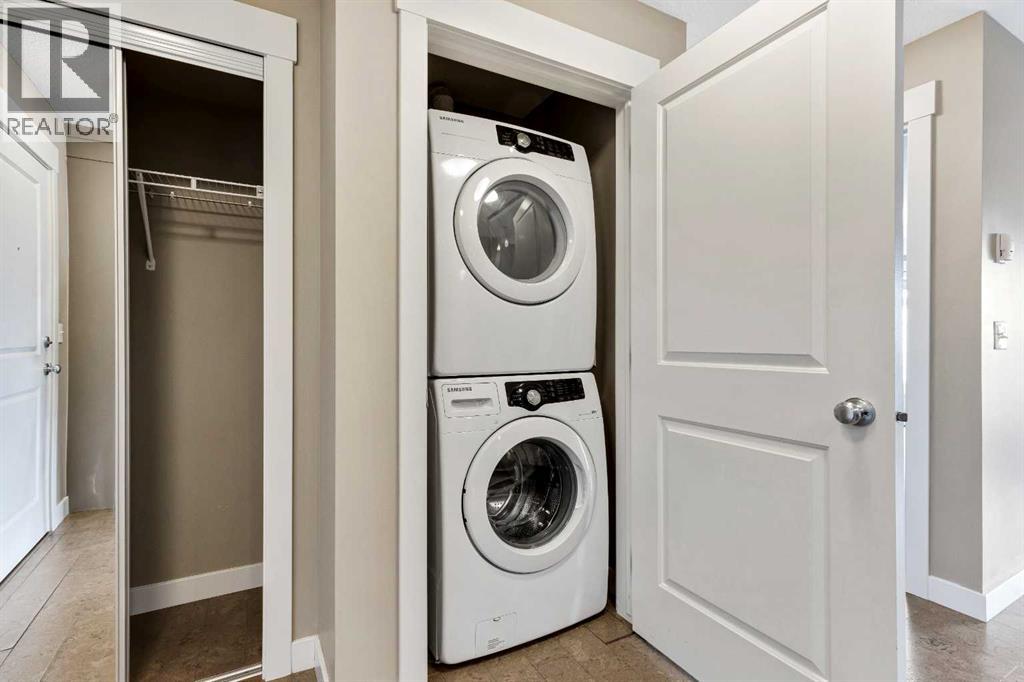 Welcome to easy, low-maintenance living in the heart of Skyview! This spacious third-floor 1-bedroom, 1-bathroom condo offers a functional layout, modern finishes, and excellent value for both first-time buyers and savvy investors.The open-concept design creates a seamless flow between the kitchen and living area, perfect for everyday living or entertaining. The kitchen features stainless steel appliances, sleek stone countertops, and convenient breakfast bar seating. Large windows bring in plenty of natural light, while the living room opens onto a private balcony equipped with a natural gas line for your BBQ — an ideal space to relax and enjoy courtyard views below, along with your titled parking stall.The bedroom includes a walk-in closet, and the unit is complete with a full 4-piece bathroom and in-suite laundry with a full-sized washer and dryer for added comfort and convenience.Enjoy a well-managed building with condo fees that cover Common Area Maintenance, Heat, Maintenance Grounds, Professional Management, Reserve Fund Contributions, Sewer, Snow Removal, Trash, and Water — keeping monthly expenses simple and predictable. Only electricity is paid separately.Located within walking distance to shopping, dining, and everyday amenities, and offering quick access to Deerfoot Trail and Stoney Trail, this is a fantastic opportunity in a growing community.Immediate possession available — don’t miss your chance to make it yours! (31659016)