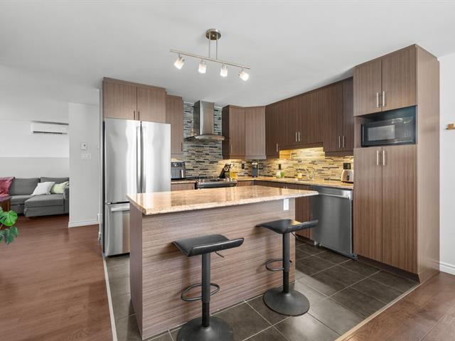 Superbe condo offrant 2 chambres de bonne dimension, un bureau et une salle de bain complète. Aire de vie lumineuse grâce à une généreuse fenestration. Le condo offre une grande cuisine moderne avec îlot central communiquant parfaitement avec la salle à manger. Un grand salon avec thermopompe murale offrant un confort optimal. En plus d'avoir deux stationnements et une espace de rangement extérieur. Construction 2012 entrevue avec soins pas la copropriété. Toiture 2025. Le tout dans un secteur central près de tous les services. Une opportunité idéale pour allier confort, fonctionnalité et emplacement stratégique. (50384029)
