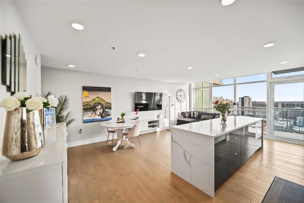 9A//Winnipeg/Showings start now. Offer as received. ** Open House Sunday 1pm to 2:30pm ** Perched on the 17th floor, this river-facing condo frames sweeping water and sunset views through walls of glass. The airy 2-bed, 2-bath layout centres around a chef s kitchen with quartz counters, an oversized island with seating, and premium Jenn-Air/Fisher & Paykel appliances. This unit also features a serene primary bedroom features a walk-in closet and a spa-inspired 3-piece ensuite. A spacious second bedroom, a full 4-piece bath, in-suite laundry, and radiant heated hardwood/tile floors that round out the interior. Step outside to an oversized private balcony, or host on the building s expansive 2,364 sq. ft. shared terrace capturing panoramic river vistas. This solid concrete residence also includes an elegant lounge (with kitchenette, fireplace, and pool table), a guest suite, a fitness studio, and secure heated above-ground parking plus a storage unit. Enjoy private access to the river walk and be just moments from The Forks and downtown conveniences. Pet-friendly and polished elevated riverfront living, perfected. Book your private showing today! (231975122)