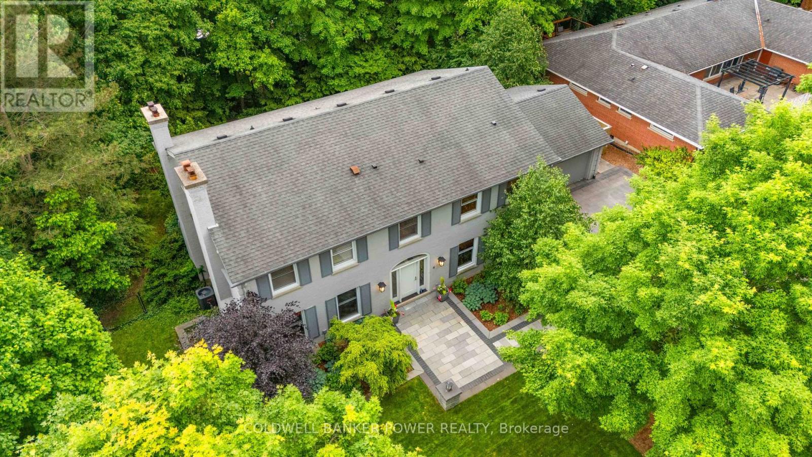 Stately Georgian 5 bedroom in MUCH SOUGHT AFTER SHERWOOD FOREST neighbourhood. Quality built 'Tamblyn Pritchard' 2 storey home with gorgeous mature lot (NEARLY 1/3 OF AN ACRE) offering the ultimate in seclusion and nature. Beautifully spacious floor plan with over 4000 square feet of finished space including 5 bathrooms. Meticulously and exquisitely re-crafted throughout with the finest of materials and cabinetry by McKaskell-Haindl Design as well as extensive re-design of landscaping, driveway and patio front and back. Huge entry foyer, main floor den with coffee and drink bar as well as cozy woodburning fireplace. Large sunken great room with woodburning fireplace open to expansive dining room which overlooks huge landscaped and canopy covered patio. Professional chef style kitchen with cherry custom cabinetry as well as burled walnut cabinet feature and marble countertops, built-in ovens and induction cook-top. Large mudroom off main as well as oversized garage. This virtually carpet free home offers 5 bedrooms and 3 bathrooms on SECOND LEVEL including huge primary bedroom with full ensuite and walk-in closet. Lower level family room retreat with polished concrete floor, 2 piece bathroom, wet bar and custom wood ceiling. Updates include: new windows throughout, hardwood flooring throughout home, 2 piece bath on main in 2020, roofing shingles in 2008, new furnace and central air approximately 3 years ago, updated bathrooms and extensive renovation throughout home. Convenient upper floor laundry. 7 appliances included. RARE OPPORTUNITY! (42169542)
