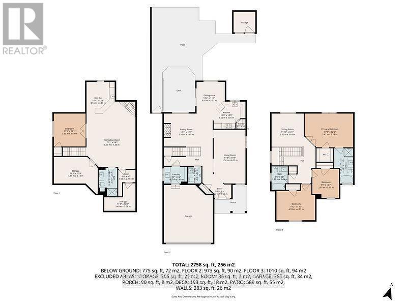 Golf Course Lot in a Luxury Area. This Kedron Park home backs onto the golf course, offering a private and tranquil setting with approximately 2,900 sq. ft. of finished living space and extensive upgrades throughout. The open concept layout on the main floor features 9 ft ceilings, hardwood flooring, and a bright layout that flows seamlessly from living to dining to family space. The kitchen overlooks the backyard, ideal for entertaining or quiet evenings at home. Upstairs offers three spacious bedrooms, including a primary with a generous ensuite, recently updated broadloom (~2020), and an upper floor media room/den. The fully finished lower level adds a fourth bedroom, a large rec room with gas fireplace, wet bar and a full washroom, well suited for extended family or guests. Notable updates include a new furnace and A/C (2025) with transferable warranty, shingles (~2018), and front, garage, and sliding doors 2018. Two gas fireplaces, fresh finishes throughout, and a backyard retreat create a setting that feels like cottage living in the city. (42169751)