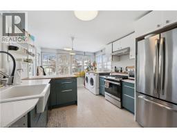 One-of-a-kind Exhibition Park rental opportunity including Water, Hydro & Gas! This upper-level suite in a charming red-brick century home offers over 1,700 sq ft of bright, flexible living space with 3 bedrooms and a 4-piece bath. Flooded with natural light and a cheerful energy, the unit features two private entrances: a front main-level entry leading to a sun-filled foyer - ideal for a home office, studio, or additional storage - and a rear upper-level entrance that opens directly into the updated modern kitchen with cork flooring and a private laundry area. The kitchen flows seamlessly into the dining space, creating a warm and functional layout for everyday living. Currently configured with two bedrooms and a living room on the second floor, and a spacious third-floor primary suite with additional living and storage space, the layout is highly versatile. No matter what room you're in, each window fills the space with beautiful natural light and leafy views, creating the feeling of being canopied among the trees. Additional highlights include a private rear entrance with deck space, access to a large, private backyard (the main-floor unit has a separate fenced yard), two parking spaces, optional basement storage, and heat pumps (wall-unit A/C) throughout for year-round comfort. Enjoy the best of Downtown Guelph and Exhibition Park living - steps to trails leading straight into downtown, a short walk to Exhibition Park, and close to local shops, cafés, and everyday amenities. Preferred possession: April 15th. (70178316)