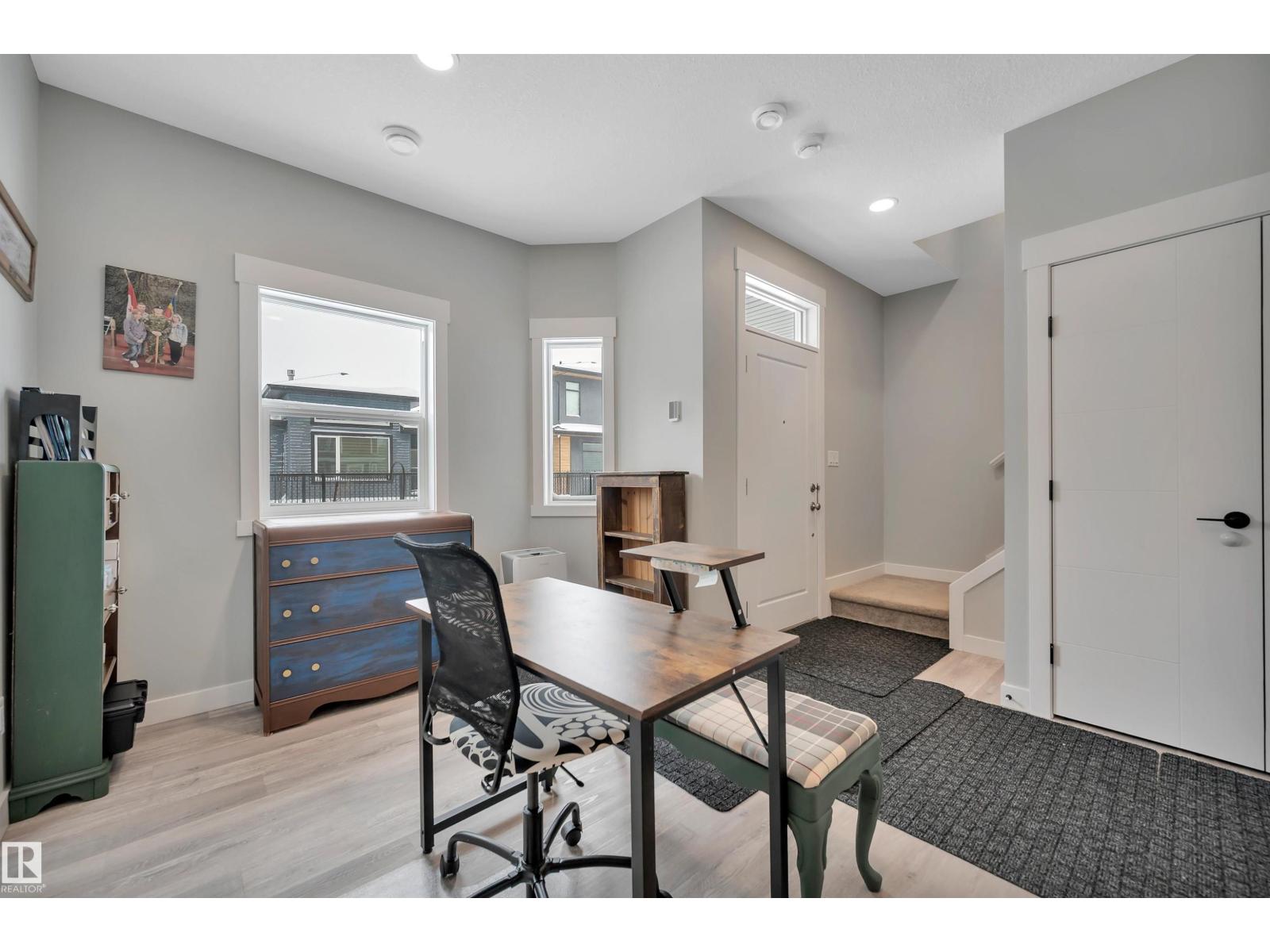 Welcome to Valencia on the Park, where style meets lifestyle in this virtually brand new 3 Bedroom unit that fronts a walking trail. You will appreciate the thoughtful layout The main level has direct access to your Double Garage, In floor Heating in the bright Office Space, ideal for working from home, a gym nook or creative studio. Upstairs is where the home truly shines. The show stopping kitchen features quartz countertops, grand island, stainless appliances, endless cabinetry, and oversized windows that flood this floor with natural light. The open concept flows effortlessly in to the dining and living room area. And the Bonus? 2 private balconies. Upstairs has 3 bedrooms, 4 pc bath and the primary suite has walk in closet and 3 pc ensuite as well as Laundry. Valencia on the Park is minutes from Shopping and Amenities along St. Albert Trail. This unit is move in ready, low maintenance and lifestyle focussed. Welcome home. (33846436)