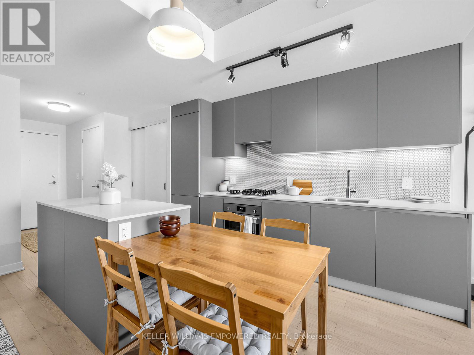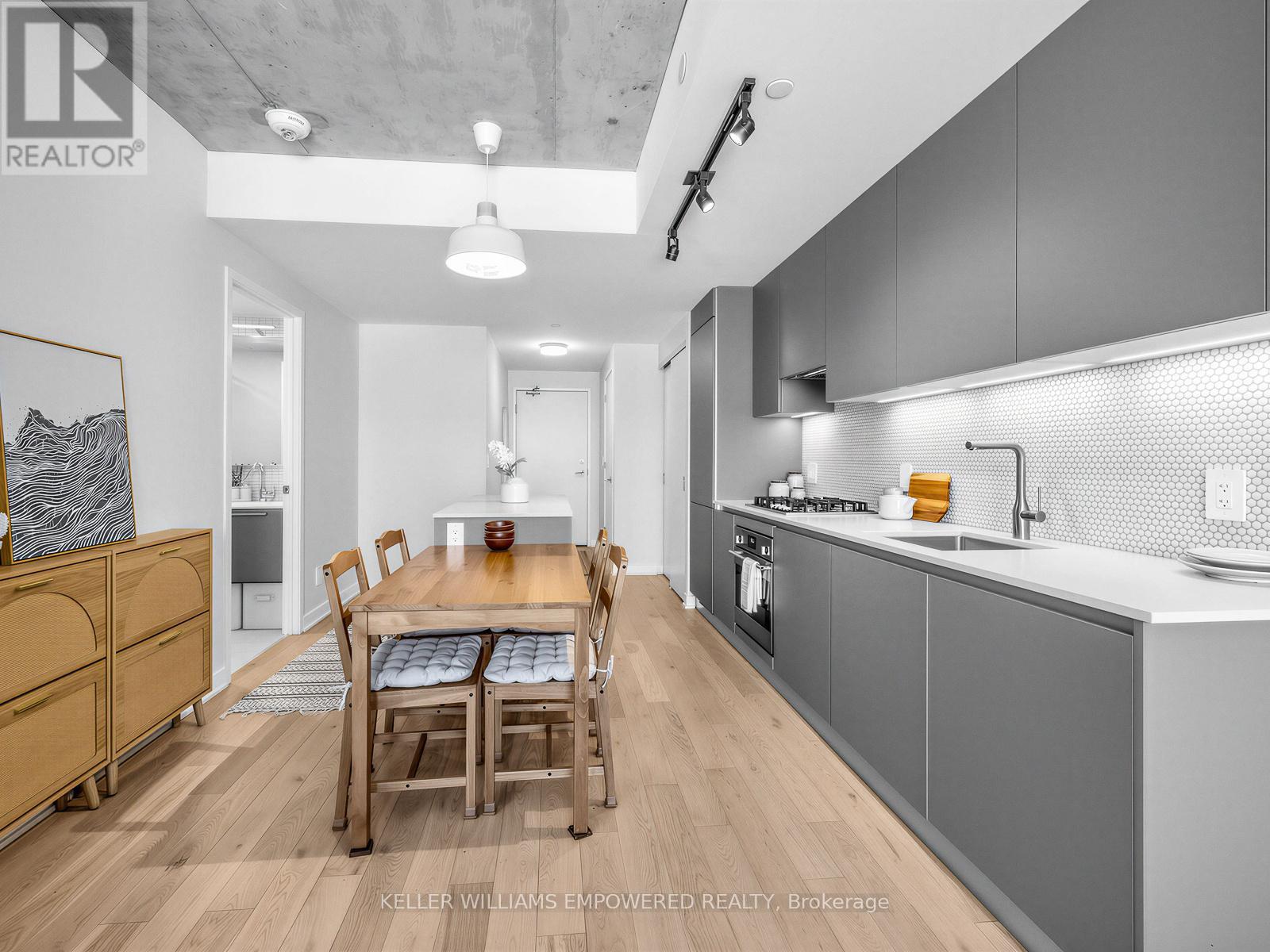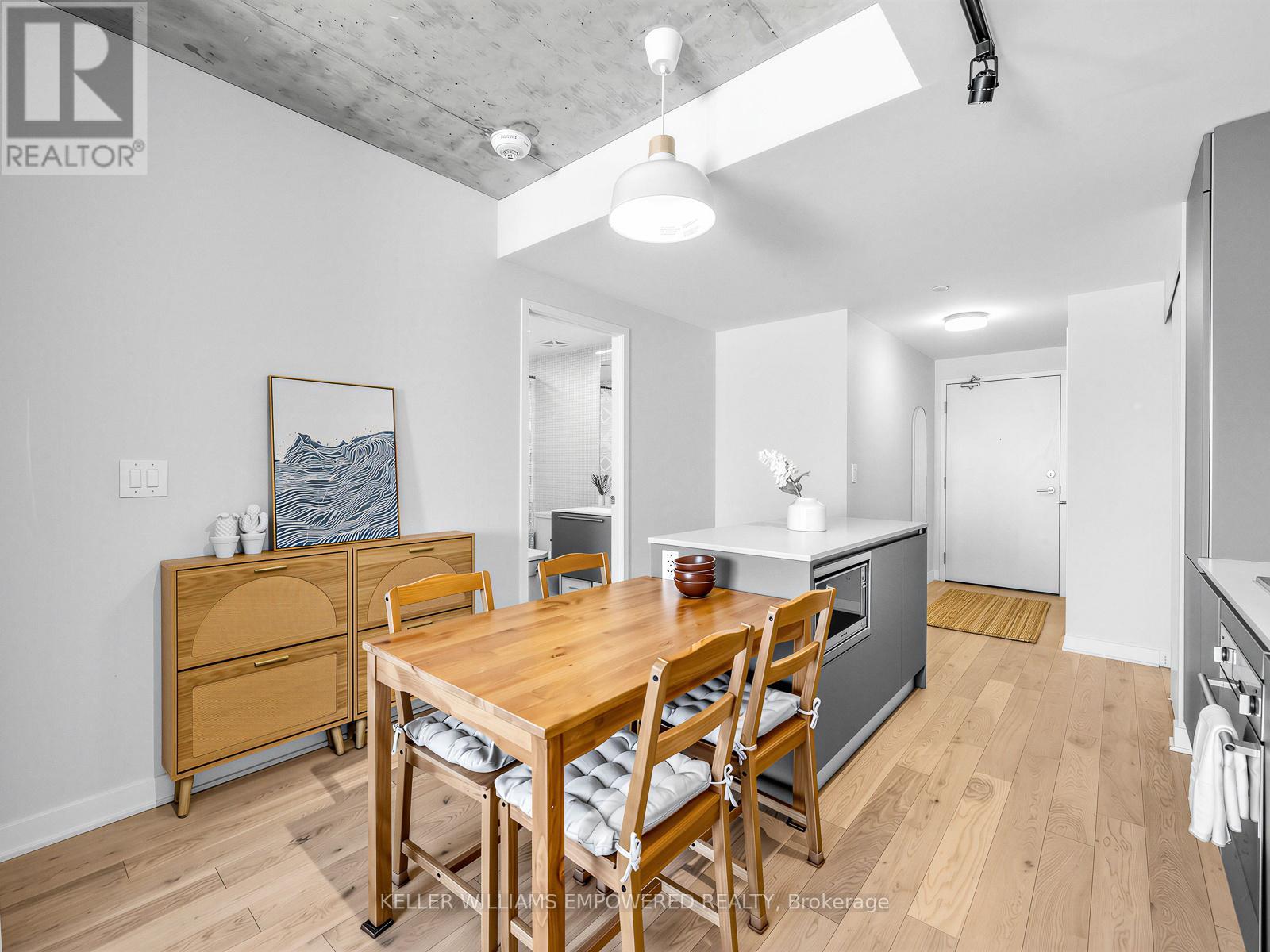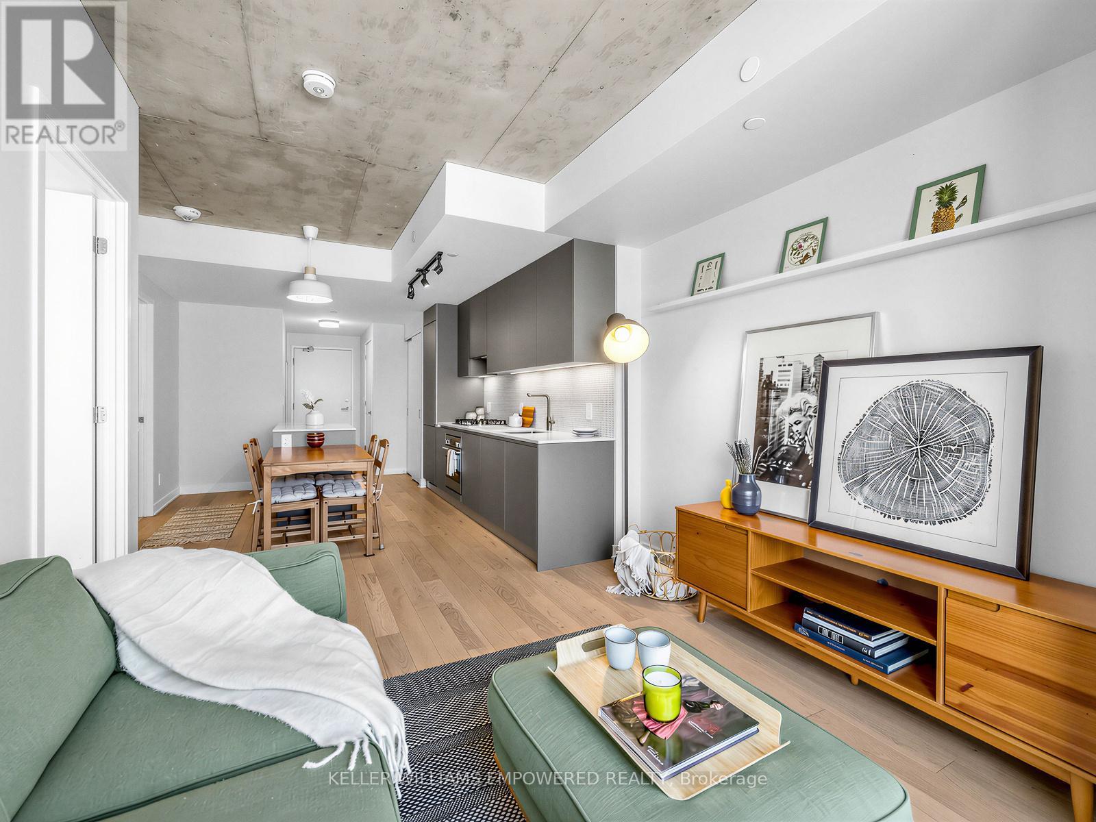 A one bedroom condo with real rooms, real light, and real livability. Welcome to Suite 709 at Junction House, an exceptional 1 bed 1 bath condo that truly stands out from the rest with its highly liveable layout & quality finishes. Located on the 7th floor, this home enjoys an abundance of natural light with exceptional privacy. The level below features many two-storey suites, which means the residents of floor 7 enjoy quiet living with fewer neighbouring doors. Inside, the well-proportioned and functional kitchen is anchored by a Scavolini kitchen with integrated appliances, gas cooktop, and centre island. A traditional door (no glass sliders here!) and ceiling height windows create a true bedroom retreat.Thoughtful extras include a large entry closet, a spacious walk-in closet with custom built shelving, a raised TV outlet for a clean media setup, and a smart Nest thermostat. Open west-facing views over the iconic Junction rail corridor add a whimsical urban outlook, with no direct sight lines into neighbouring buildings. Set within an intimate, amenity rich boutique building designed by Superkül Architects, this enviable location sits at the gateway to The Junction. Building amenities include dog wash station, gym, yoga/pilates room, party room, rooftop gardens with BBQs & 9am-9pm concierge services 7 days a week! Moments to shops, restaurants, transit, the UP Express, and the West Toronto Rail Path. (42170430)
