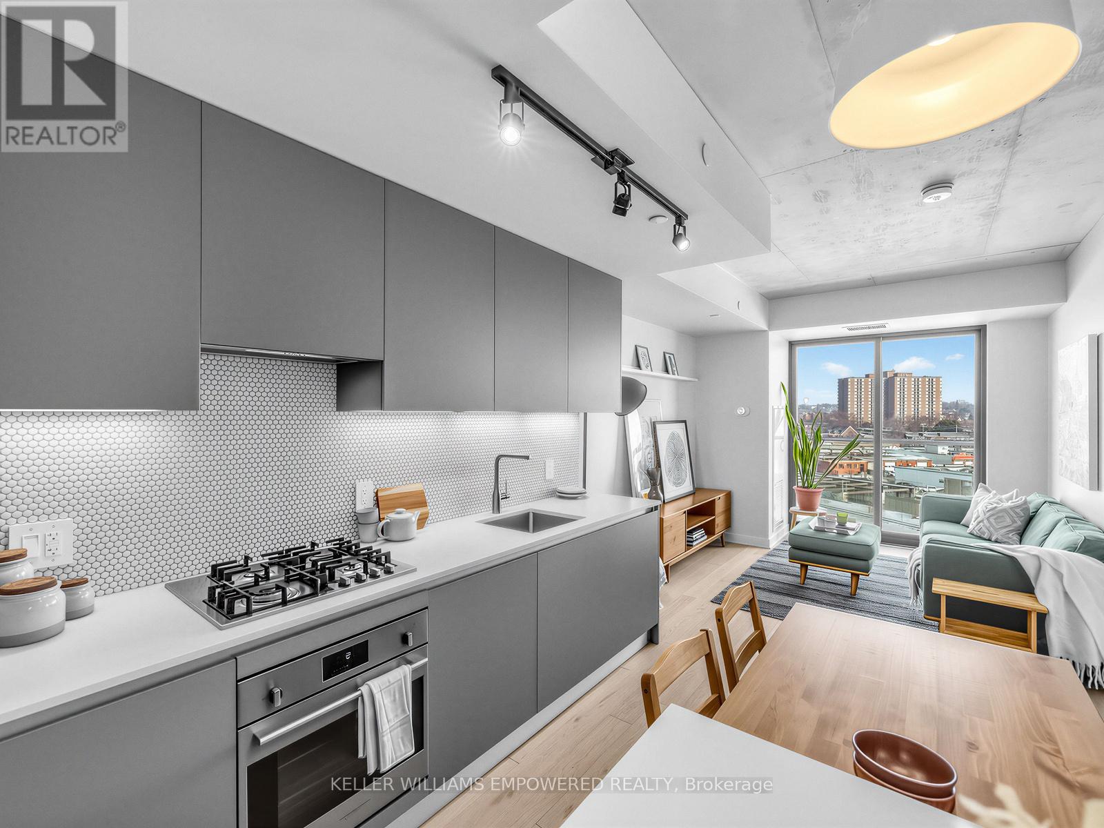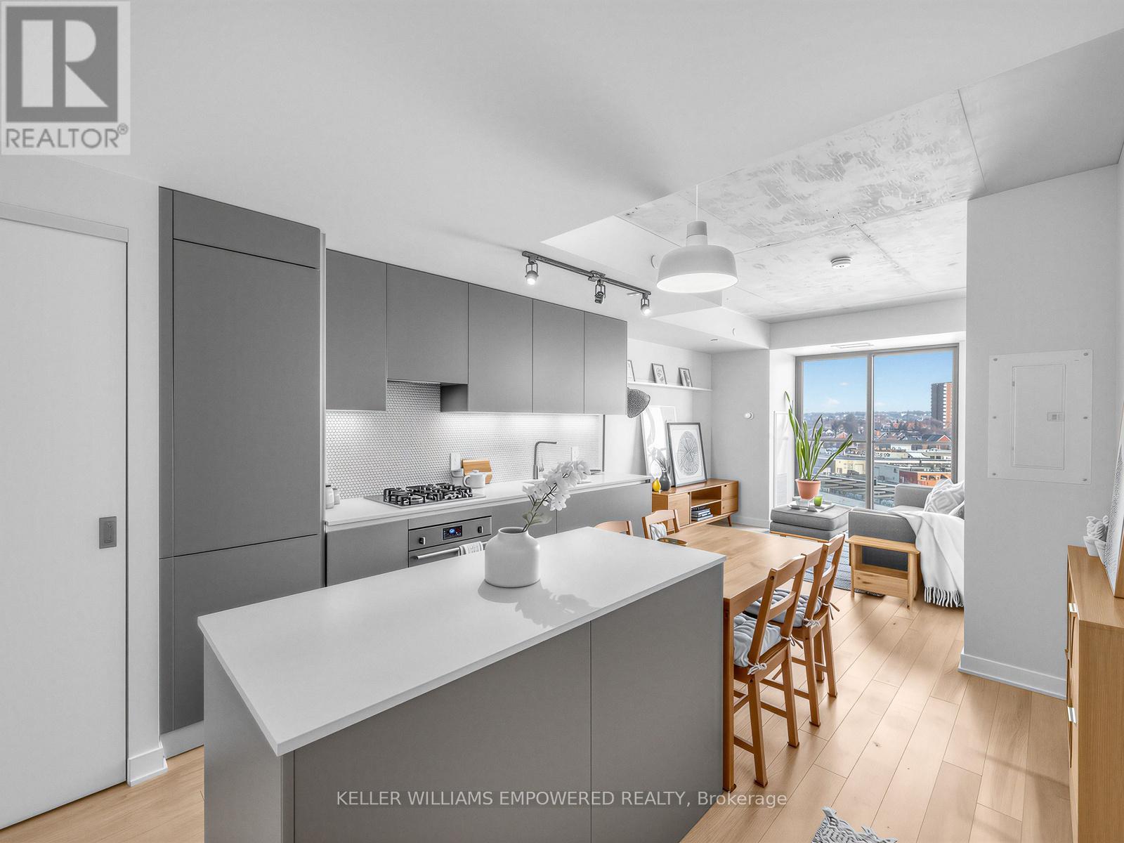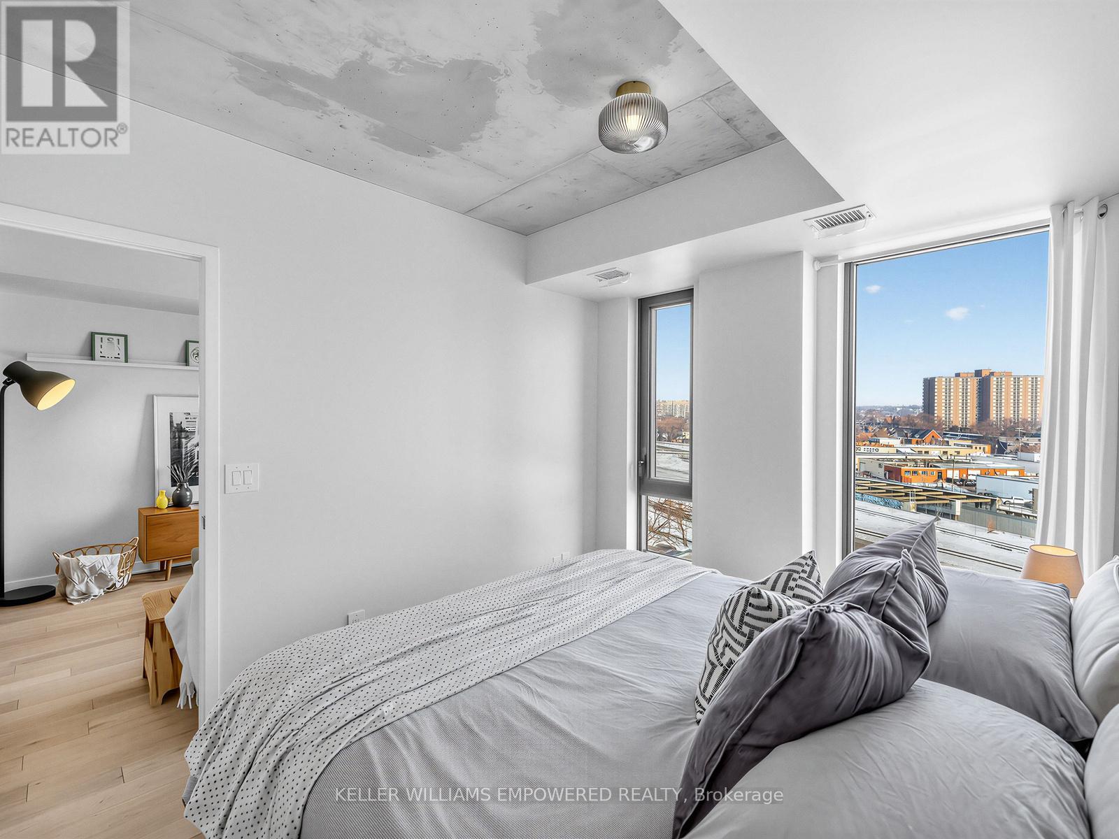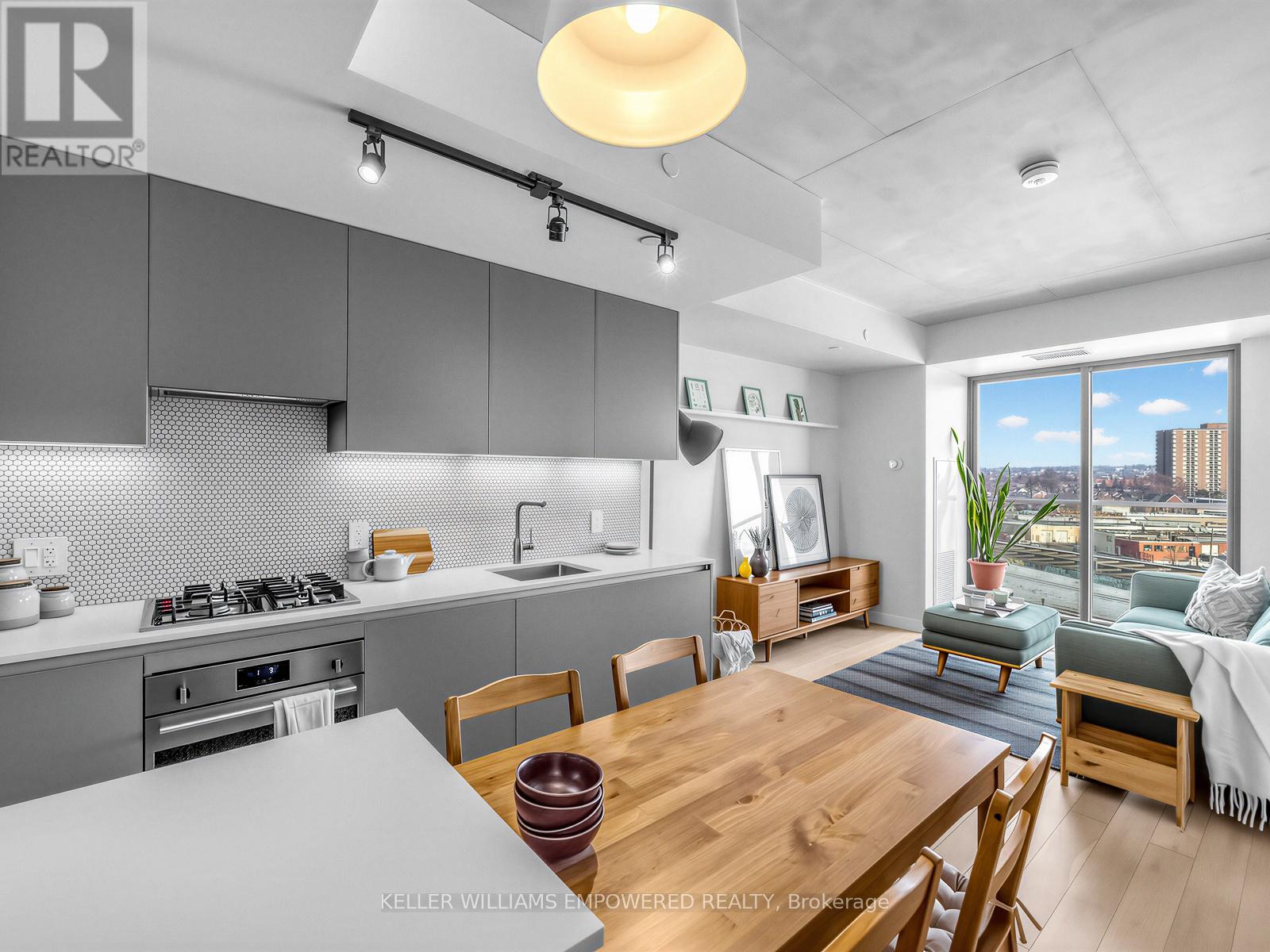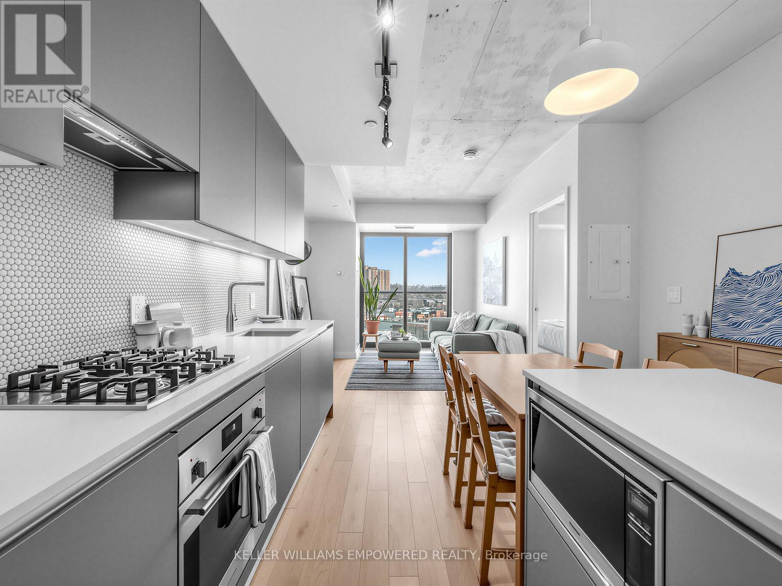 A one bedroom condo with real rooms, real light, and real livability. Welcome to Suite 709 at Junction House, an exceptional 1 bed 1 bath condo that truly stands out from the rest with its highly liveable layout & quality finishes. Located on the 7th floor, this home enjoys an abundance of natural light with exceptional privacy. The level below features many two-storey suites, which means the residents of floor 7 enjoy quiet living with fewer neighbouring doors. Inside, the well-proportioned and functional kitchen is anchored by a Scavolini kitchen with integrated appliances, gas cooktop, and centre island. A traditional door (no glass sliders here!) and ceiling height windows create a true bedroom retreat.Thoughtful extras include a large entry closet, a spacious walk-in closet with custom built shelving, a raised TV outlet for a clean media setup, and a smart Nest thermostat. Open west-facing views over the iconic Junction rail corridor add a whimsical urban outlook, with no direct sight lines into neighbouring buildings. Set within an intimate, amenity rich boutique building designed by Superkül Architects, this enviable location sits at the gateway to The Junction. Building amenities include dog wash station, gym, yoga/pilates room, party room, rooftop gardens with BBQs & 9am-9pm concierge services 7 days a week! Moments to shops, restaurants, transit, the UP Express, and the West Toronto Rail Path. (42170430)