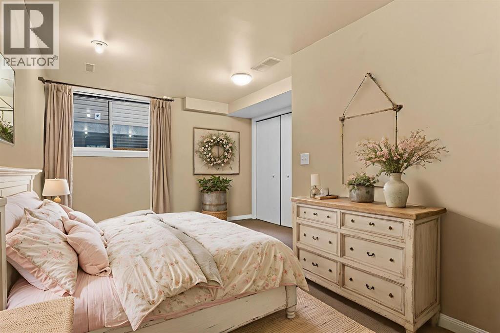 The cutest house in Garrison Woods! This charming cottage-style home exudes warmth and character, perfectly situated on the peaceful, tree-lined street of Quentin Court. Offering three bedrooms and three bathrooms across 1,653 square feet of developed living space, this home delivers both charm and functionality. A previous military home, originally built as a place of strength and security—still stands with quiet dignity, its character intact and its original structure proudly preserved. The living spaces retain their traditional proportions: defined rooms rather than open expanses, each with its own purpose and atmosphere. Its delightful curb appeal shines on a generous 118 x 38-foot lot, welcoming you with an inviting front porch and a standout blue front door. Inside, historic charm blends beautifully with modern updates. The main floor features an updated kitchen, a full bathroom, and a spacious living area that opens onto the back patio, creating an ideal space for entertaining or relaxing. A versatile flex room completes the level and can serve as a formal dining area, office, or additional living space. Upstairs, you’ll find two comfortable bedrooms and a full bathroom. The finished basement adds even more flexibility, offering a full-sized bedroom, another full bathroom, a flex space perfect for a gym, media room, or guest area, plus convenient in-home laundry. The backyard is equally impressive, featuring a large 26.4 x 5.8-foot patio ideal for outdoor gatherings, along with a double car garage for added convenience. Updates over the years include: roof on house and garage (2016), fence (2020), deck (2021), gutters/downspouts/some siding (2023), bedroom blinds (2024), freshly painted trim throughout home, including windows (2026). Garrison Woods is a highly walkable, master-planned community known for its blend of historic military charm and modern urban living. With 12 acres of dedicated greenspace, including River Park, Sandy Beach Park and the Elbow Ri ver pathway system, tree-lined walkways, extensive off-leash dog walking and hiking trails. Residents also enjoy access to the outdoor pool, tennis courts and skating rinks, along with several education options, including Lycée Louis Pasteur (French International School), Altadore School and Clear Water Academy. This community also enjoys all the amenities of Marda Loop, with quick access to Crowchild Trail and 14th Street, and a short drive to downtown. This lovingly maintained home offers the perfect blend of charm, comfort, and location in one of Calgary’s most sought-after communities. (31659200)