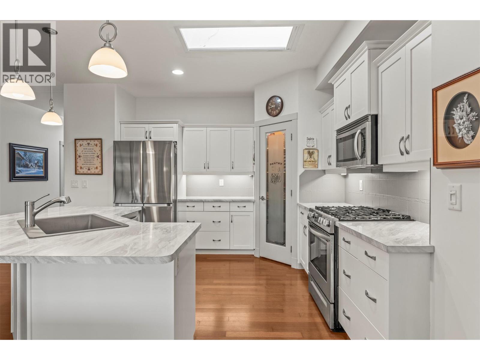 Welcome to Okanagan Breeze, a well-kept community in one of Vernon’s most walkable neighbourhoods. This thoughtfully updated 3-bedroom home offers comfort, function, and peace of mind — with key improvements already completed so you can simply move in and enjoy. Inside, the home was painted in August 2024, creating a fresh, bright feel throughout. The renovated kitchen features new stainless steel appliances (August 2024), gas range, and an efficient layout ideal for everyday living. A new washer and dryer were added in 2025 for added convenience. The primary bedroom is generous in size with a spacious walk-in closet and a beautifully renovated ensuite complete with heated floors, a walk-in shower, and double vanity. Two additional bedrooms offer flexibility for guests, hobbies, or home office space. Step outside to enjoy the full-length covered back deck with sunscreens for added comfort, or relax on the front veranda with its updated glass railing. The garage is well-equipped with added shelving and cupboards, plus new garage door springs installed in 2025. Located close to Okanagan Lake, walking paths, and everyday amenities, this is a friendly, established neighbourhood known for great neighbours and an easy lifestyle. (39748413)