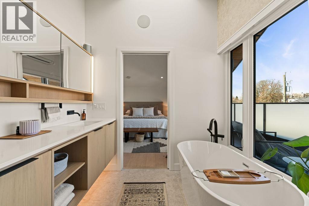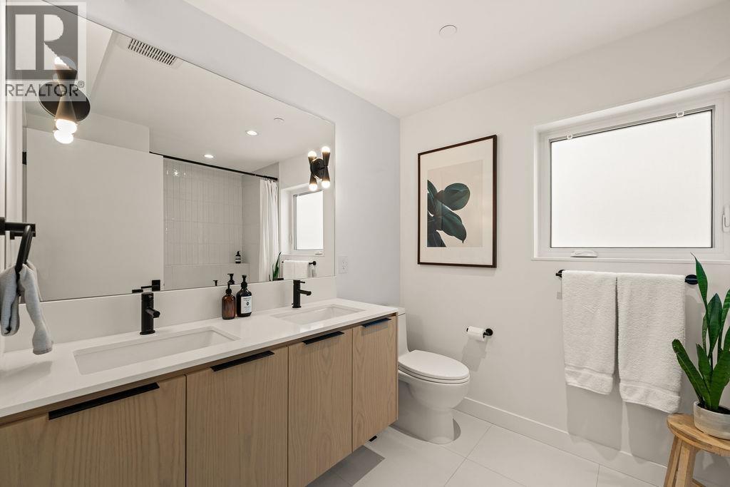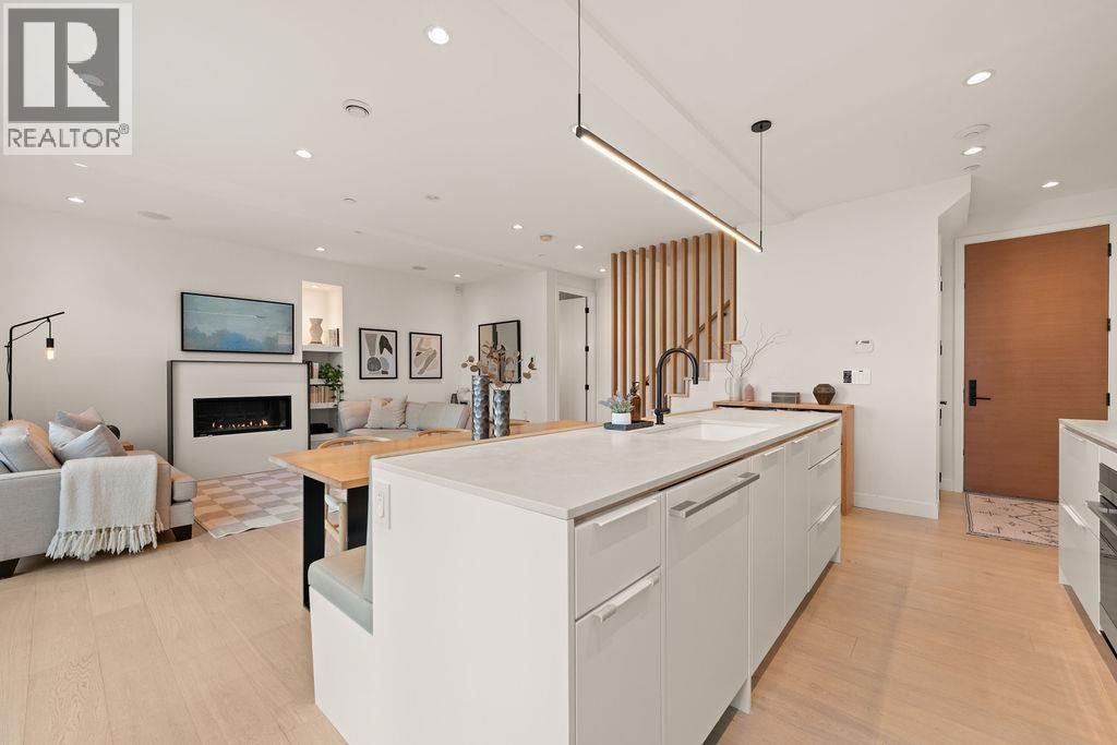 Turnkey without the GST! Rare opportunity to own this modern REAR duplex designed by award-winning 'Architrix Studio'. Blends style, function & the BEST layout available. 9' ceilings, oversized Euro sliding doors & kitchen outfitted with integrated Fisher & Paykel appliances, Caesarstone counters, huge island with built-in banquet seating for 8. Upstairs are 2 large beds, spacious double sink bath & laundry. The top floor primary suite ft vaulted ceiling, huge custom walk-in closet, a bright ensuite bath with tub & shower & huge covered terrace with mountain views. Over-engineered pile foundation, super-insulated walls, Hardie-shaker exterior, radiant in-floor heating, AC on top level, blackout blinds & full smart home integration with in-ceiling speakers. Open House Feb 28th & Mar 1st from 2-4pm (32463865)
