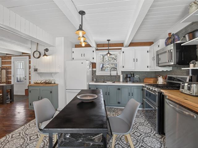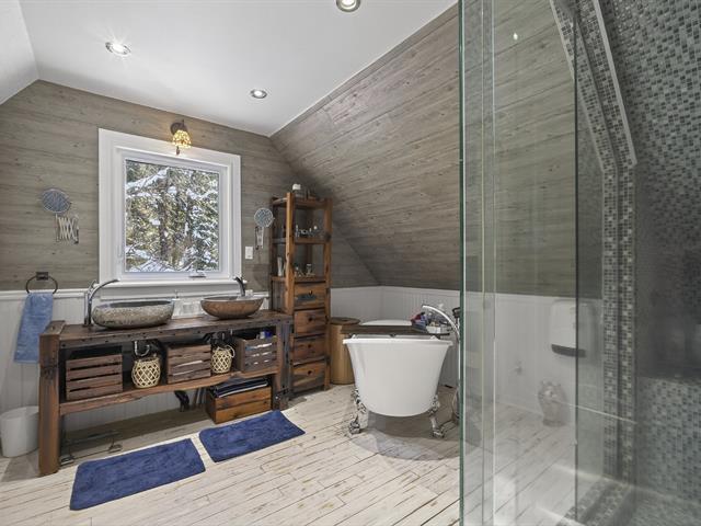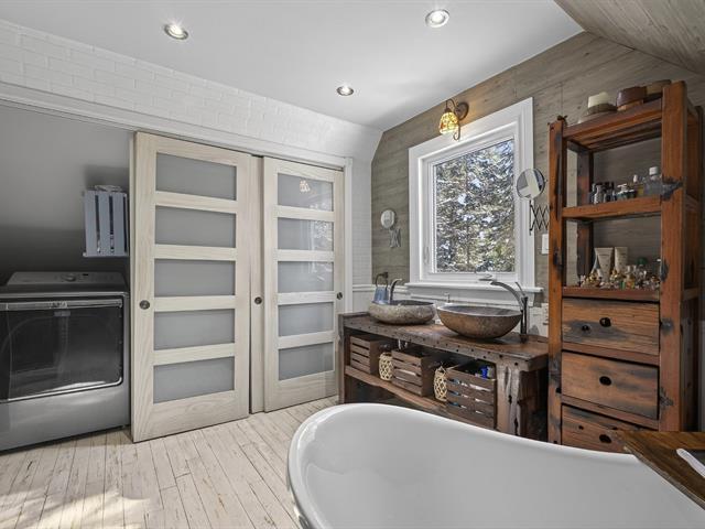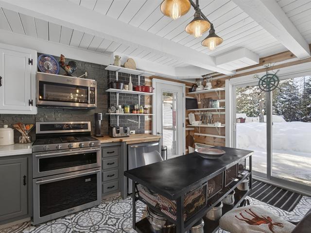 Cozy cottage located in the sought after Domaine-Guindon in Sainte-Agathe-des-Monts. Located on a wooded corner lot, it offers both access to the water and a waterfront portion, ideal for fully enjoying the natural setting. The property includes 2 bedrooms, a full bathroom, a shower room and a laundry room upstairs. Several major renovations were carried out in 2022: roof, kitchen, electricity, etc. ensuring peace of mind. Only 7 minutes from the village and 15 minutes from Mont Blanc, you enjoy a strategic location near services and many outdoor activities (41024752)