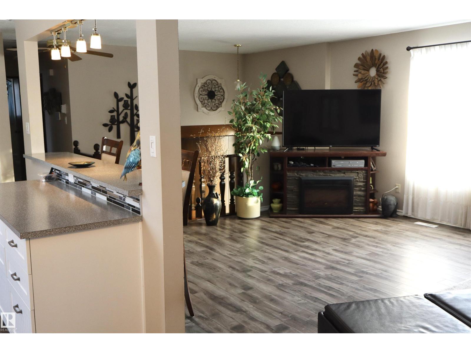 Welcome to this beautifully maintained bi-level home backing onto mature trees and scenic walking trails, offering privacy and a peaceful setting. Inside, you’ll find a stunning new kitchen with modern white cabinetry, sleek countertops, and stylish backsplash, perfectly designed for everyday living and entertaining.The upper level features two bedrooms and large family bathroom as well. Large windows fill the home with natural light, creating a warm and inviting atmosphere.The lower level has an abundance of potential and space! Step outside to an amazingly landscaped backyard retreat featuring a hot tub and cozy outdoor fireplace area—ideal for relaxing or hosting guests year-round. Completing the property is an oversized double detached garage with plenty of room for vehicles, storage, or workspace. A perfect blend of updated interior comfort and exceptional outdoor living in a sought-after location! A lovely home in a wonderful location and community! (33847028)