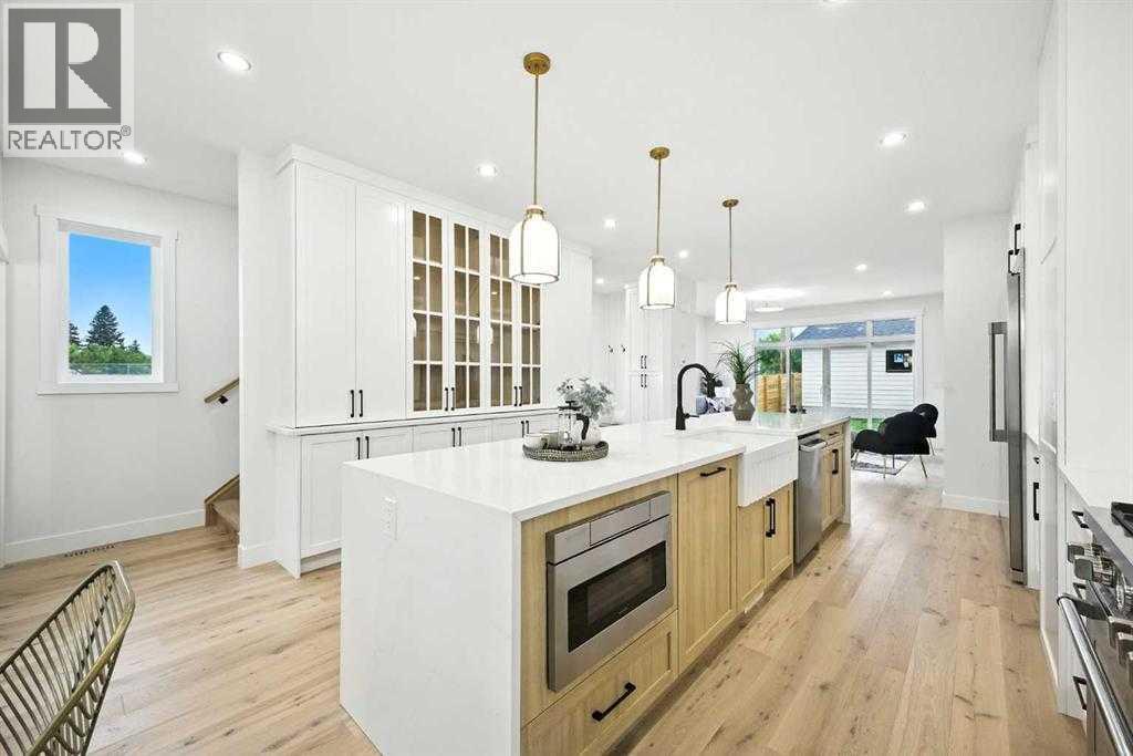 BEST PRICED NEW DETACHED HOME IN AREA...DONRT MISS OUT!!..Set on a prime corner lot in one of Calgary’s most established inner-city communities, this home delivers striking design, exceptional craftsmanship, and everyday livability in Mount Pleasant. Created by Tricor Design Group, this newly constructed home offers a refined yet comfortable lifestyle, blending clean architectural lines with carefully curated finishes. Positioned directly across from a school and framed by professional landscaping, the setting offers both privacy and connection, with Confederation Park, the Mount Pleasant Sportsplex, local playgrounds, and downtown just moments away. Inside, the main floor unfolds into a bright, contemporary living space designed for both relaxed living and effortless entertaining. Large windows invite natural light throughout, highlighting the rich engineered hardwood flooring and stylish gas fireplace with custom built-ins that anchor the living area. The seamless open layout creates a natural flow between the kitchen, dining, and living spaces, offering an ideal backdrop for gatherings of any size. The kitchen is thoughtfully designed with a focus on clean aesthetics and everyday function. Quartz countertops, a dramatic waterfall island, and premium integrated appliances including an oversized refrigerator and Bertazzoni Range create a polished and highly functional workspace. Custom pantry storage enhances organization while maintaining a streamlined look. Expansive sliding doors extend the living space outdoors to a private backyard featuring a concrete patio, green space, and access to the double detached garage - perfect for hosting, relaxing, or enjoying warm summer evenings. Upstairs, the primary retreat provides a calming and well-appointed escape. A sleek electric fireplace adds warmth and ambiance, while the custom walk-in closet offers generous storage. The spa-inspired ensuite elevates daily routines with heated floors, a rough in for steam shower, an d a freestanding soaker tub designed for total relaxation. Two additional well-sized bedrooms, a full bathroom, and an upper-level laundry room complete this floor, offering practical comfort for family living. The fully finished lower level expands the home’s versatility with a spacious recreation area featuring a modern wet bar and wine fridge, ideal for entertaining or unwinding. A dedicated home gym, fourth bedroom, and full bathroom provide flexible space for guests, work, or wellness. Thoughtfully designed from top to bottom, this home presents a seamless blend of modern style, comfort, and functionality in a sought-after inner-city location, and offers a rare opportunity to experience elevated urban living in a home where design and lifestyle come together effortlessly. (31660182)