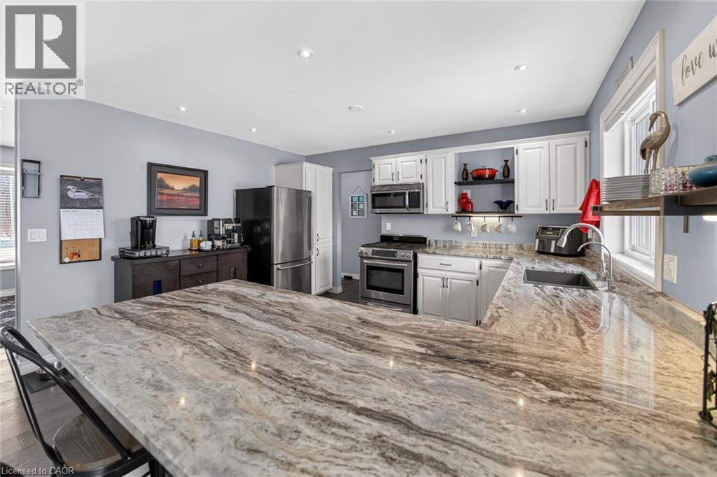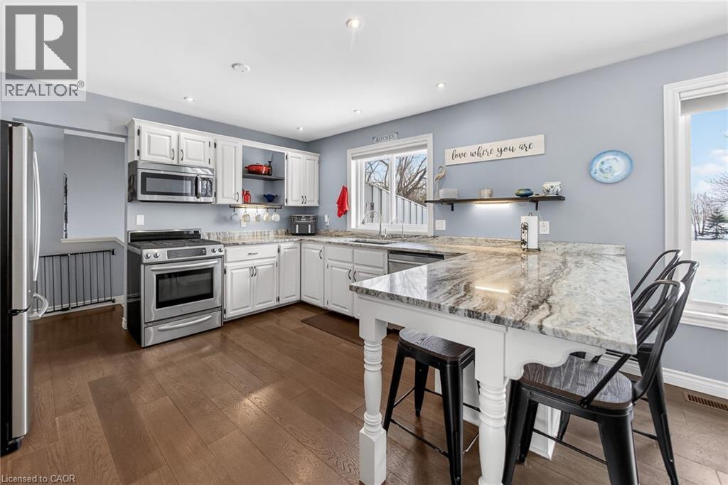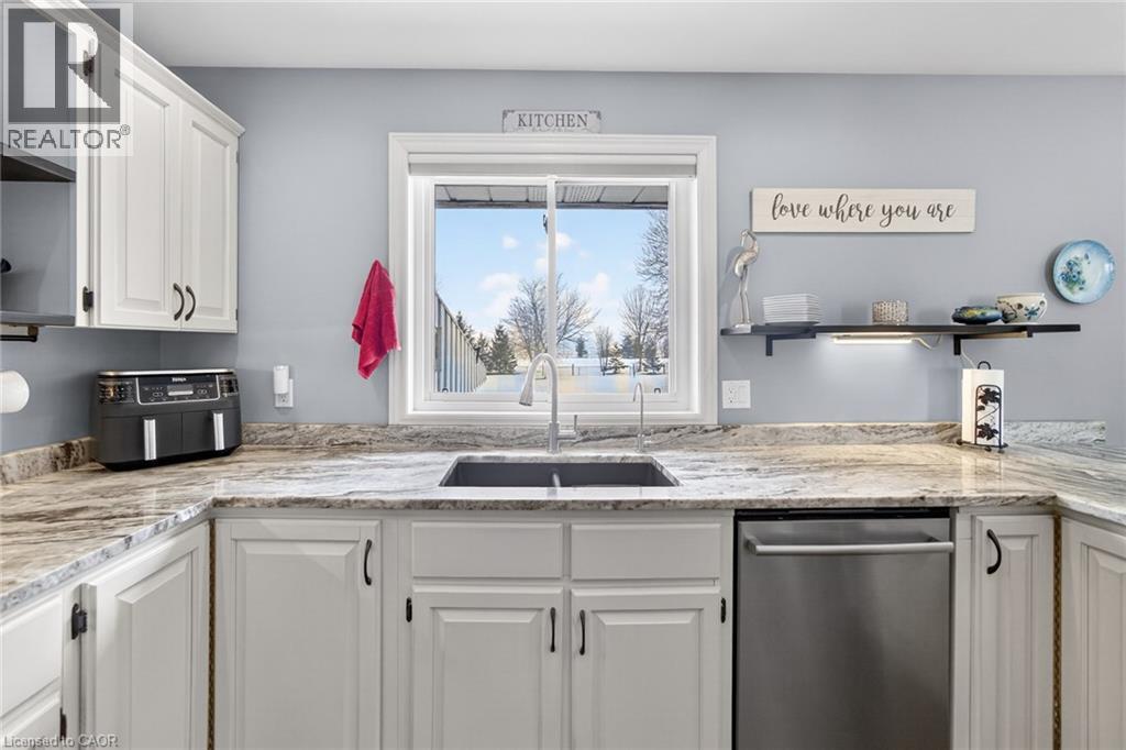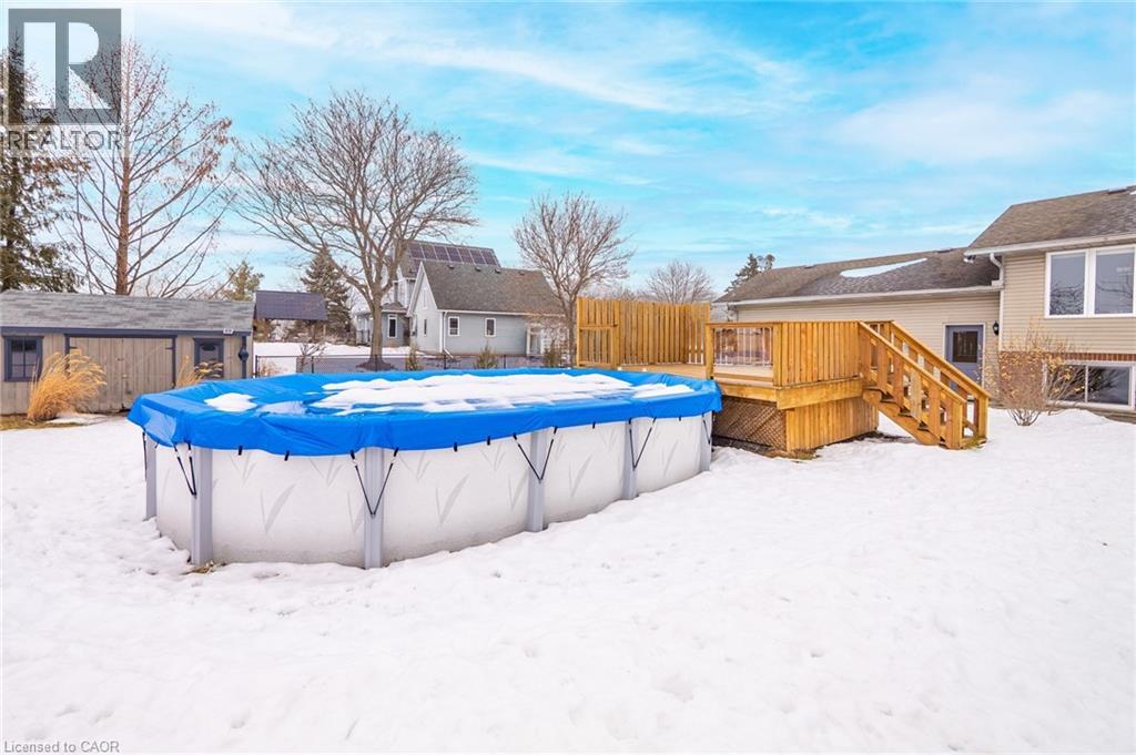 Immaculate raised brick bungalow in the heart of Wainfleet, just a short walk to schools, library, playgrounds, sports fields and the arena. Set on just over 1 acre with no rear neighbours, this beautifully maintained home offers privacy, open views and incredible sunsets. The inviting main floor features an open concept layout with a bright kitchen and dining area, spacious living room, and three generous bedrooms including a primary with walk-in closet. Wide plank hardwood floors add warmth throughout. The finished lower level offers large windows, a spacious rec room with gas fireplace, an additional large bedroom, bonus room and 3-piece shower. Ideal potential for an in-law suite setup. Exterior highlights include a private covered porch overlooking the expansive backyard, 15x24 pool with deck (2022), and chainlink fence (2021). Major updates provide peace of mind: furnace (2021), water heater (2024), full home filtration system (2025), three pumps replaced (2023), rear windows (2023), extended kitchen island with granite counters (2022), and Generac generator maintenance (2024). Attached double car garage completes this move-in ready property. Meticulously cared for inside and out. (70179271)