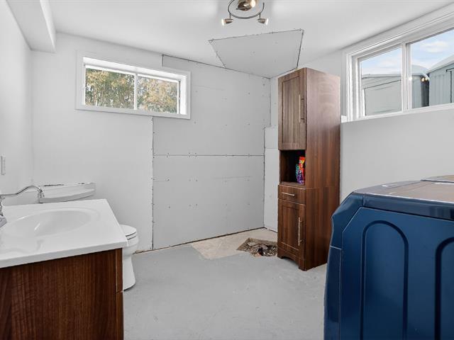 Charming single-story bungalow located in Saint-Hubert, in a peaceful family-friendly neighborhood. Very bright, the main floor features an open-concept living area with a cathedral ceiling in the living room, two bedrooms, and a bathroom. The basement offers a spacious family room, a third bedroom, a powder room with laundry facilities, and ample storage. The fenced backyard includes an above-ground pool, a large deck, and two sheds. There is also a paved driveway for four cars. Walking distance to a supermarket and just minutes from the Champlain Bridge, Quartier DIX30, the REM light rail system, schools, and other services. (38391365)