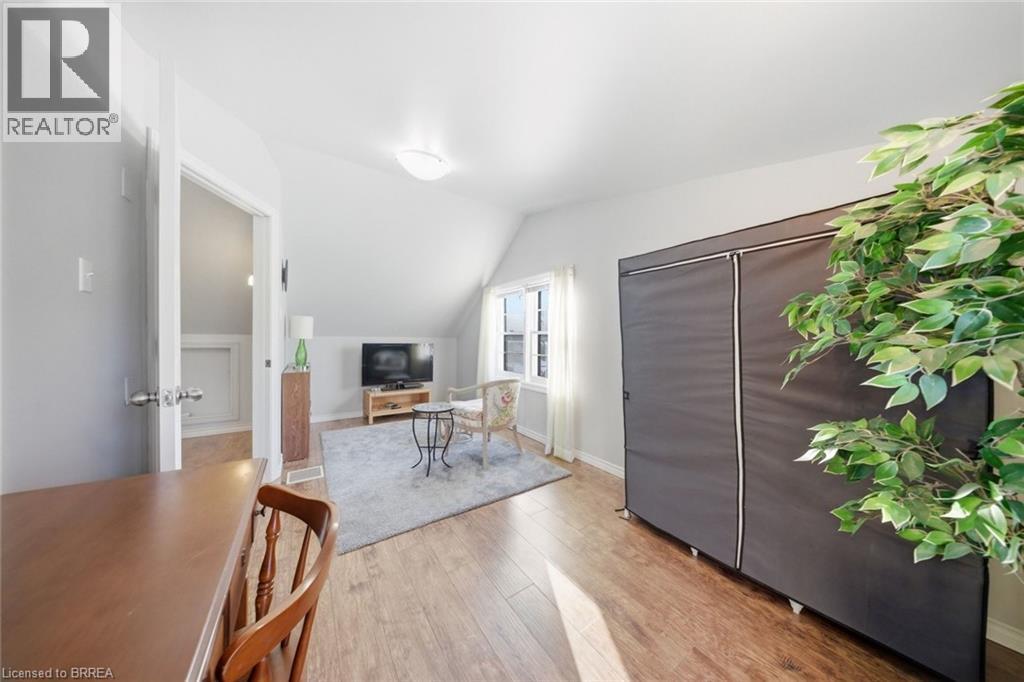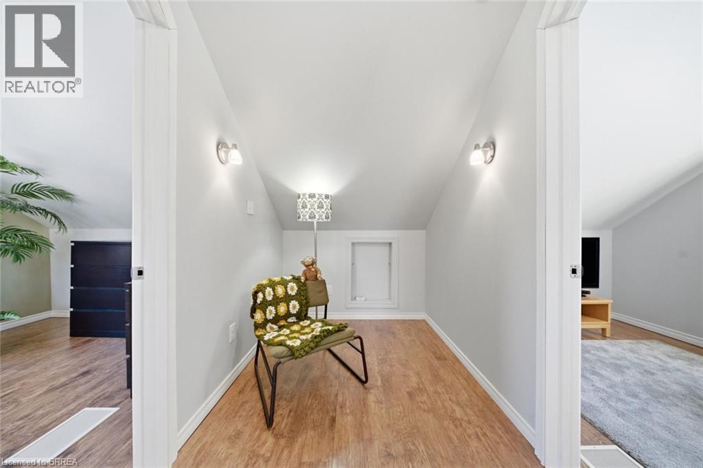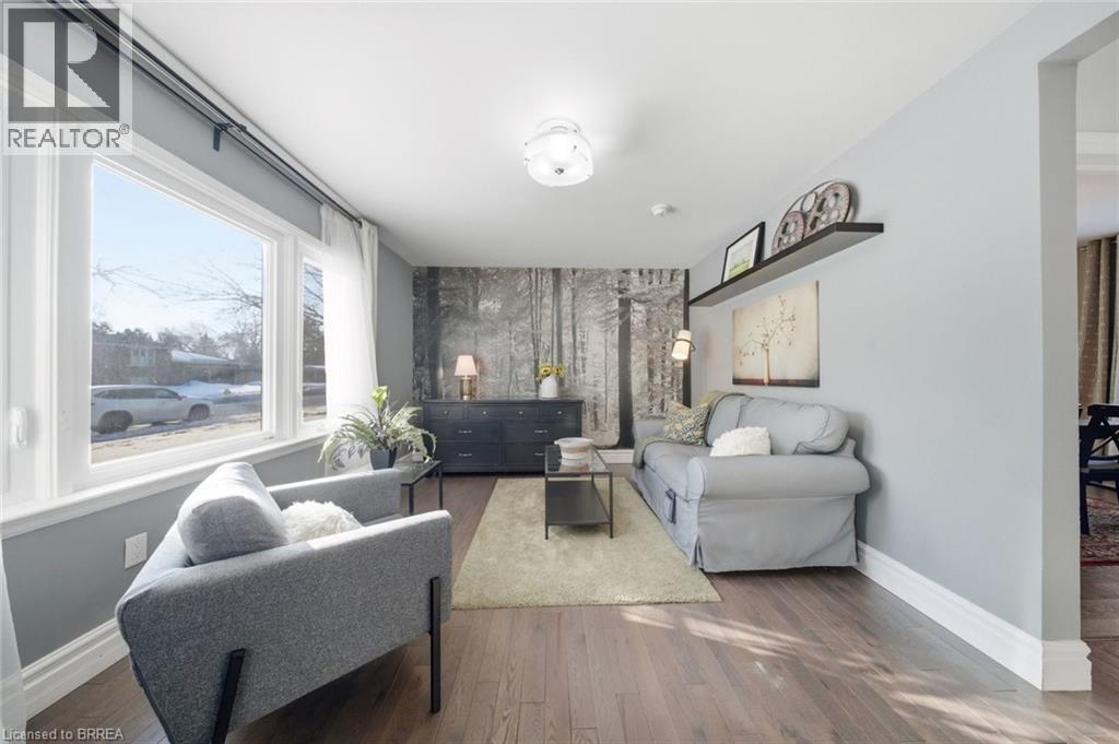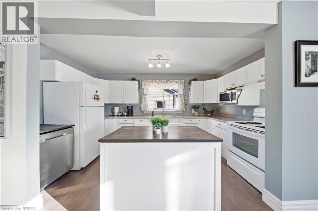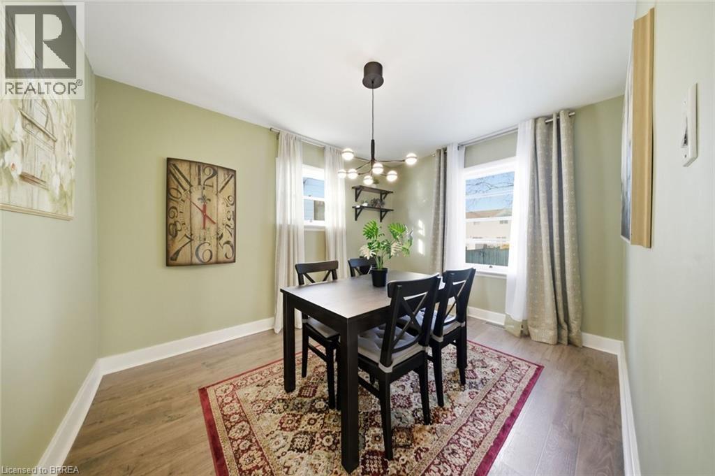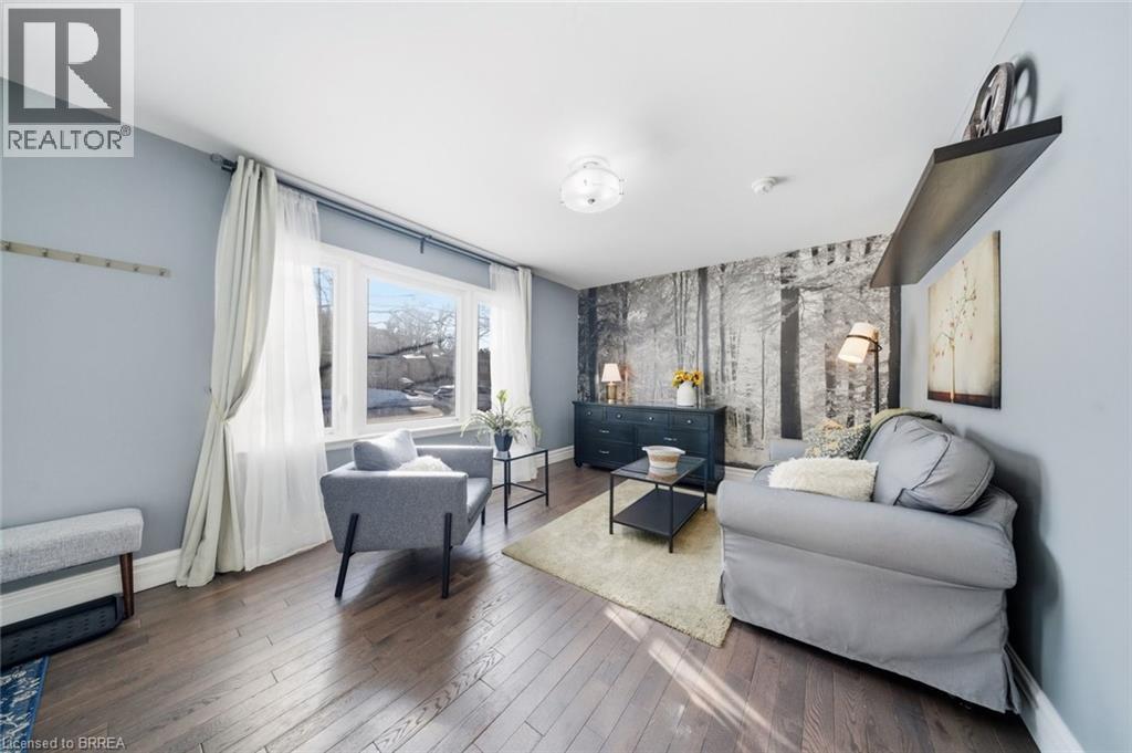 Rare Opportunity in a Quiet, Central Neighbourhood — Ideal First Home Welcome to this inviting 1½-storey home offering 3 bedrooms and 2 updated baths, perfectly designed for comfortable everyday living with flexible spaces to grow. The open-concept main floor features a bright kitchen with island, plus a separate dining room that can easily double as a home office or guest bedroom — ideal for remote work or hosting visitors. A practical mudroom off the back leads to the fully fenced yard, summer patio area & deck , where mature maple trees in both the front and backyard create a peaceful, natural setting. Upstairs, you’ll love the 2 huge upper bedrooms with large windows and beautiful natural light, along with a charming foyer at the top of the stairs — perfect for a cozy reading nook or study area. The finished lower level adds even more living space with a family room, additional 3 rd bedroom , and convenient 3-piece bath — great for guests, teens, or movie nights. Outside, enjoy multiple outdoor living spaces, gardens, and a tree-lined street. Large garden shed included for your tools and yard equipment , great storage building . The asphalt driveway provides parking for 3 vehicles off-street, a rare bonus in this area. Set in an excellent central location, just short drive to or you can walk to Wood Street Park, Wayne Gretzky Sports center , Brantford Aquatic Facility, shopping, transit, and everyday amenities. Tucked away yet close to everything — this is a quiet neighbourhood where homes rarely come up for sale, making it a fantastic opportunity for your first home. Additional updates include gas furnace, hydro, and central air conditioning, bathroom fixtures , lighting, newer wood and laminate flooring, most windows , decks front and back, to name a few. A warm, welcoming property with outdoor enjoyment spaces, mature trees, and versatile living areas — move in, settle down, and start building equity in a great community. (70178062)