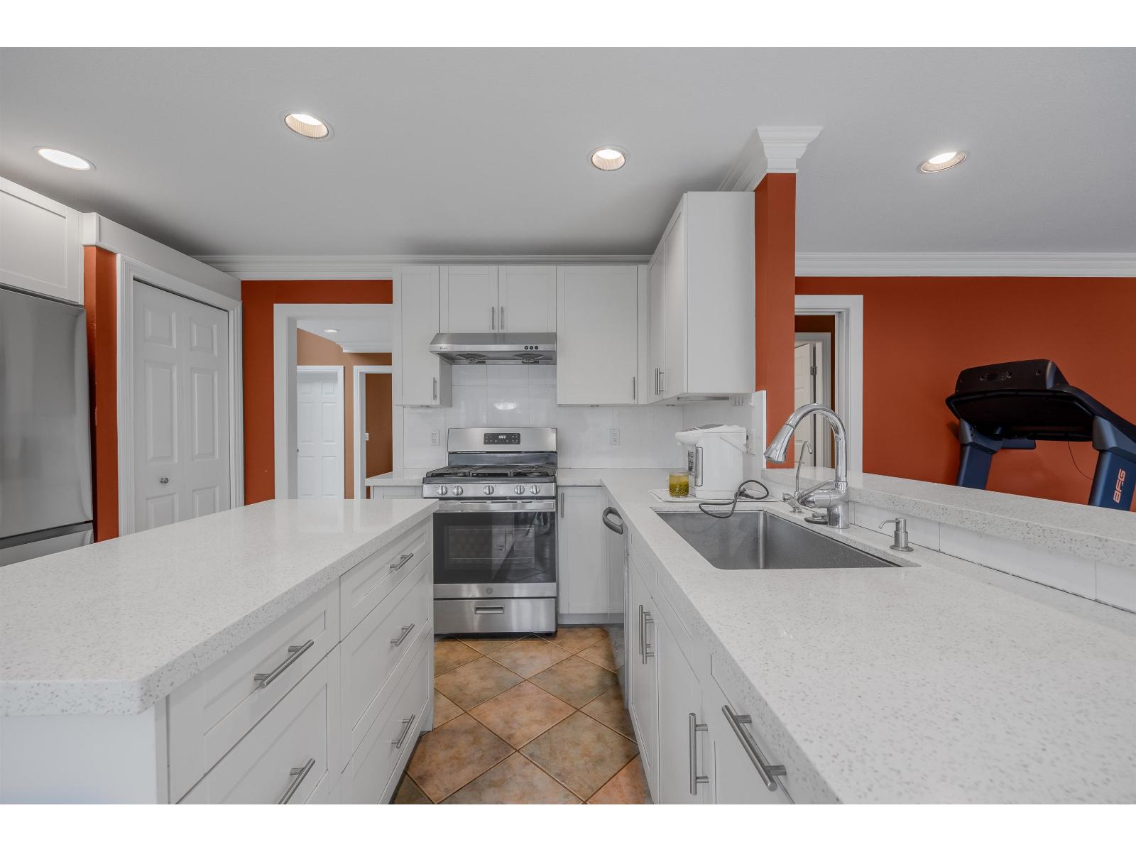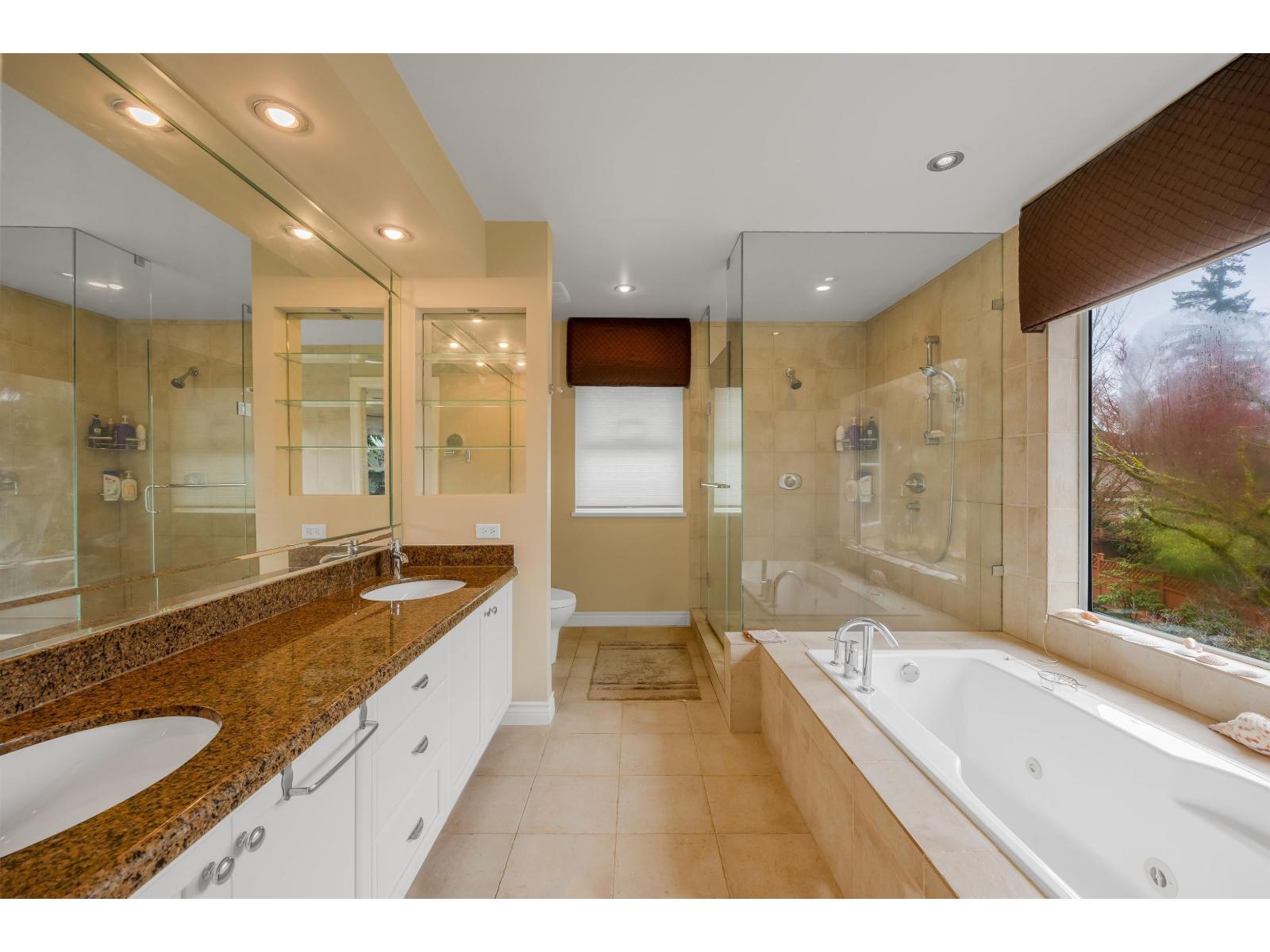 LOCATION! SHERBROOKE ESTATES, one of the most sought after neighborhoods in South Surrey. 4 bed/3 bath 2582sf on a huge Lot, double garage. Bright open floor plan, perfect for family living. The ground floor features high-ceiling entrance, spacious formal dining rm &cozy family rm w/ elec. fireplace; a 4th bedroom &full bath;the cozy livingrm can be an office or even a guest room. Kitchen updated in 2015, new fridge & 4-year gas stove, very handy island, quartz countertops. Upper level w/ 3 spacious bedrms. Big master bedrm w/ Fabulous spa-like ensuite bath (jetted tub,heated floors, granite counters). Main bath fully updated. Security system; central vacumm; Brand new Bosch on-demand Hot water tank; roof 2015! fabulous Elgin Park Secondary & Semiahmoo Trail elementary. (32465150)