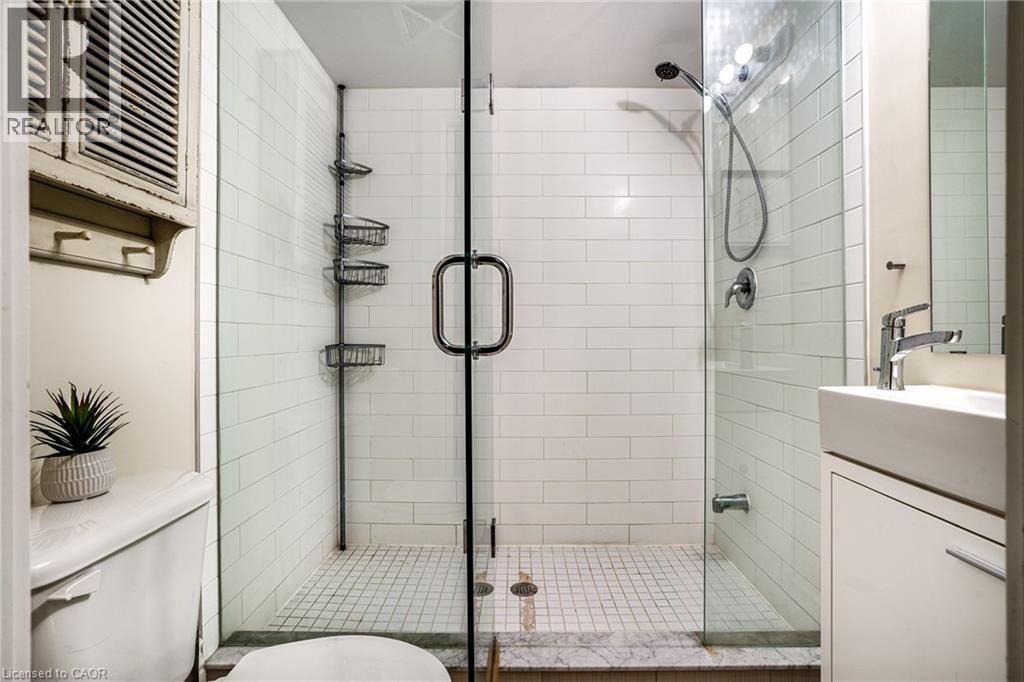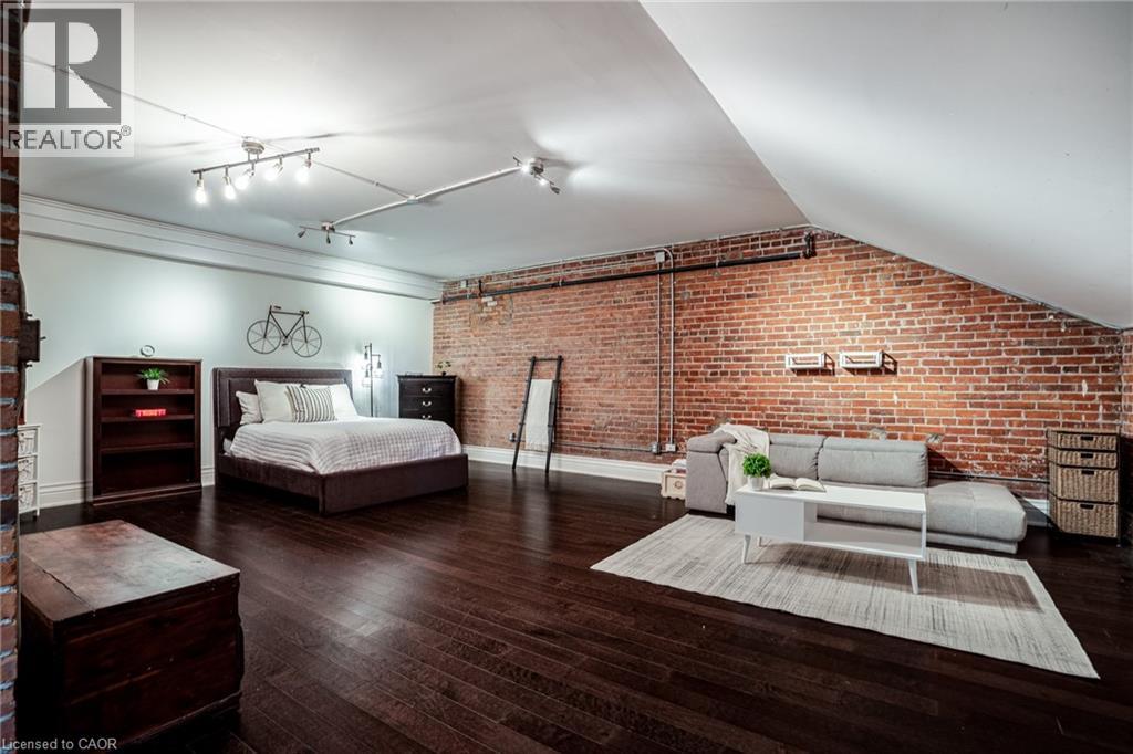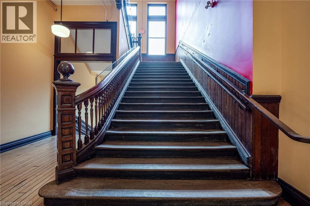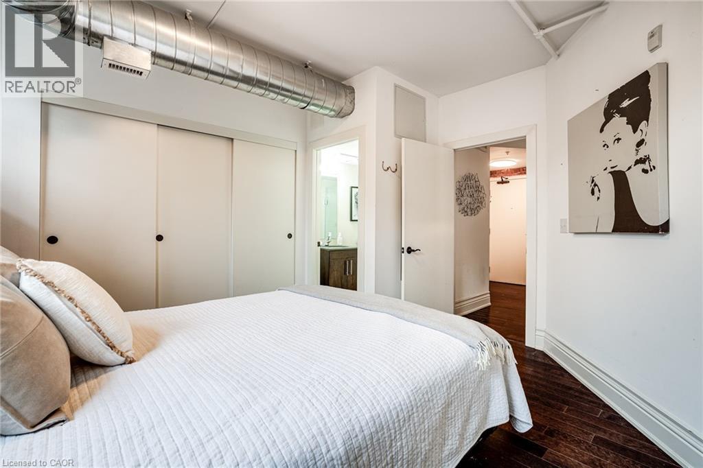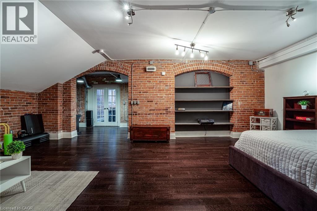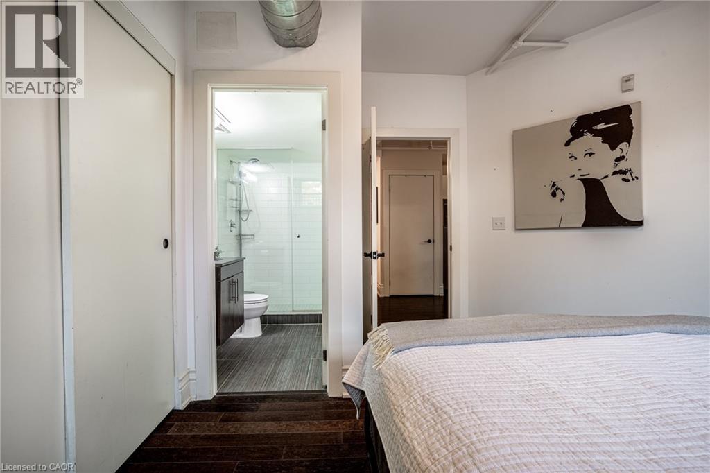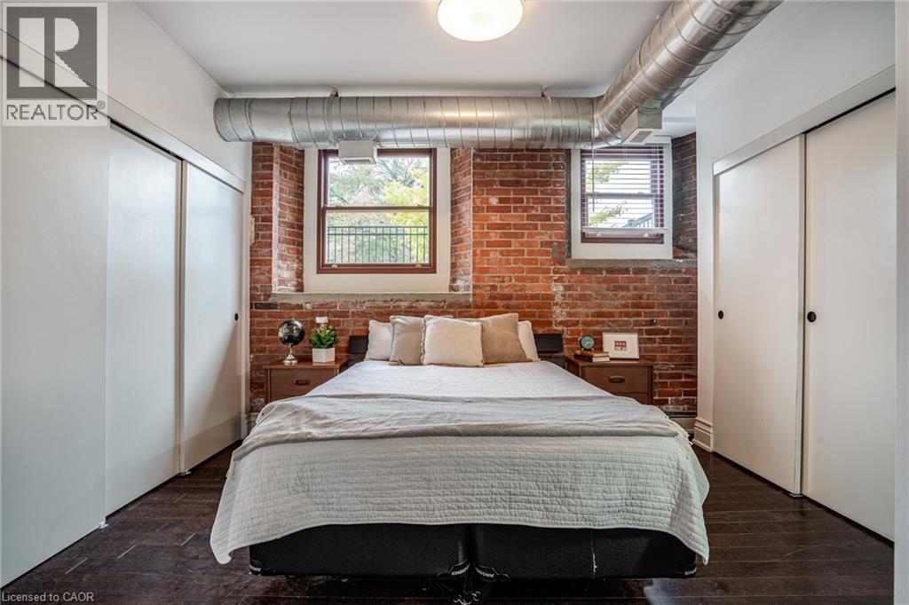 Discover a truly distinctive opportunity at the historic Stinson Lofts, where old-world character and modern comfort converge. This rare main-floor corner unit offers exceptional value for its generous square footage, highlighted by a remarkable 28’ x 12’ private patio with sweeping views of the community playground and the lush Hamilton escarpment. Inside, soaring ceilings, exposed brick walls, and rich hardwood floors preserve the timeless charm of the 1894 Stinson School, while an airy open-concept design provides a bright and inviting flow. The stylish kitchen features quartz counters with a breakfast bar, stainless steel appliances, and in-suite laundry, seamlessly opening to spacious living and dining areas ideal for entertaining. This unique layout features 2 primary suites, the first with dual closets and a modern three-piece bath. The second private suite has it’s own entrance off the dining area through french doors, with a large versatile accessway that is perfect for an office or extra storage. Believed to have once been the kindergarten classrooms of the original school, this spacious suite includes built-in shelving and a fall bathroom. It's time to move into this one-of-a-kind residence that offers a rare blend of heritage elegance, modern functionality, and unbeatable value. Includes one exclusive parking spot, P21 (70180567)