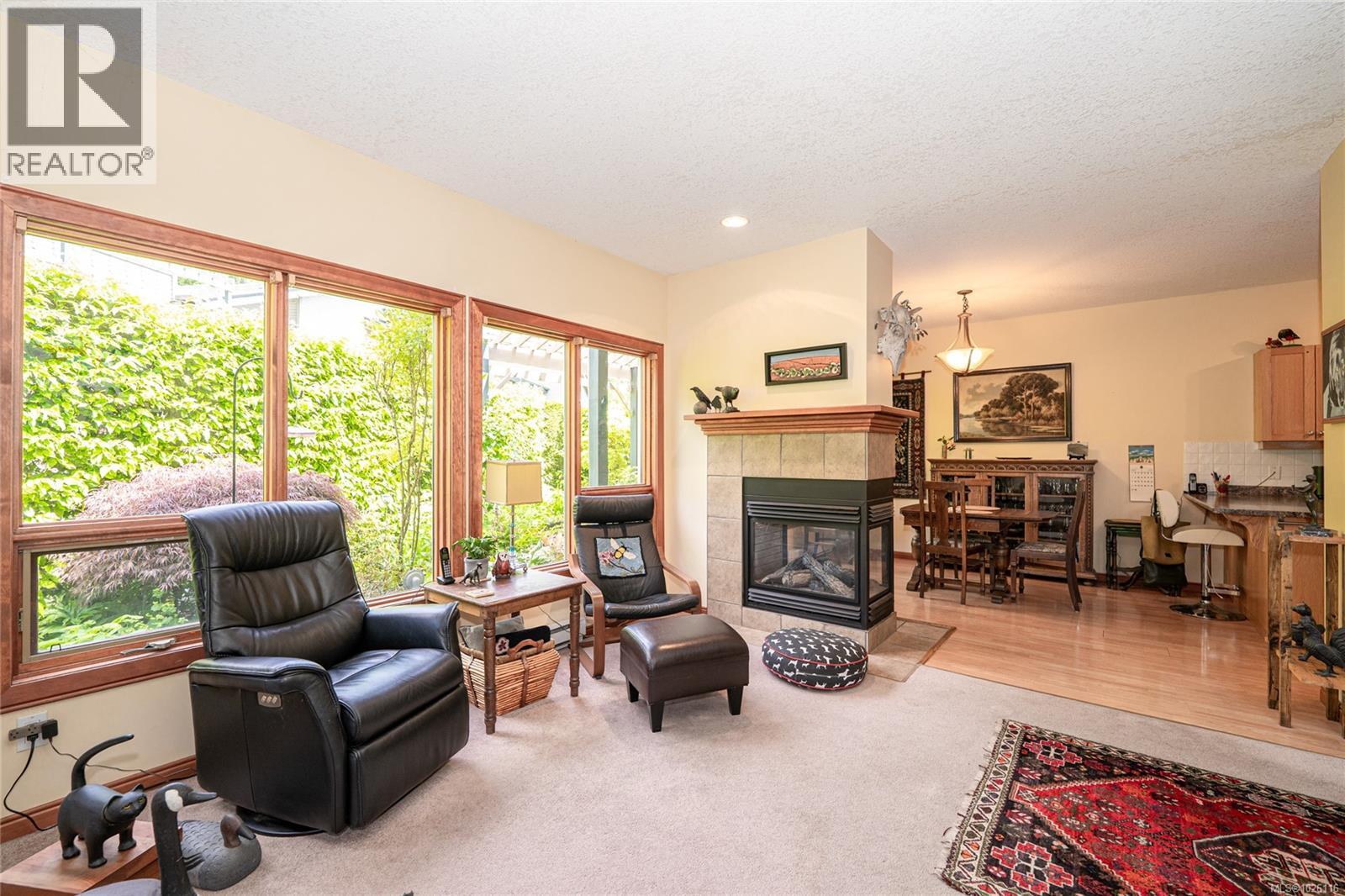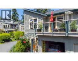 Beautifully appointed 3-bedroom, 2-bathroom townhouse offering over 1,800 sq ft of thoughtfully designed living space, plus a single-car garage complete with workbench and additional storage. The main level showcases bright, open-concept living with expansive windows, a striking three-sided fireplace, and French doors opening to a private garden patio with glass overhang for year-round enjoyment. The spacious primary suite features a 5-piece ensuite, walk-in closet, and a sunny south-facing deck with ocean and mountain views—an ideal setting for morning coffee or quiet afternoons. Situated in a quiet, well-maintained complex with mature landscaping, a tranquil pond, and gazebo. Conveniently located within easy walking distance to the hospital, grocery store, pharmacy, and other amenities. A rare offering that blends comfort, space, and exceptional location. (30400688)