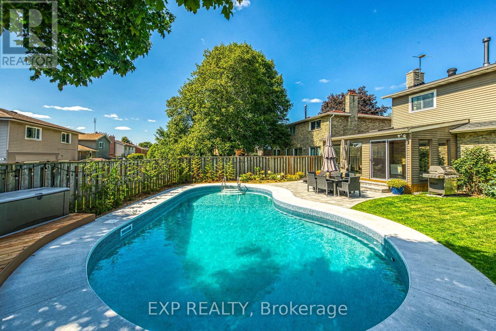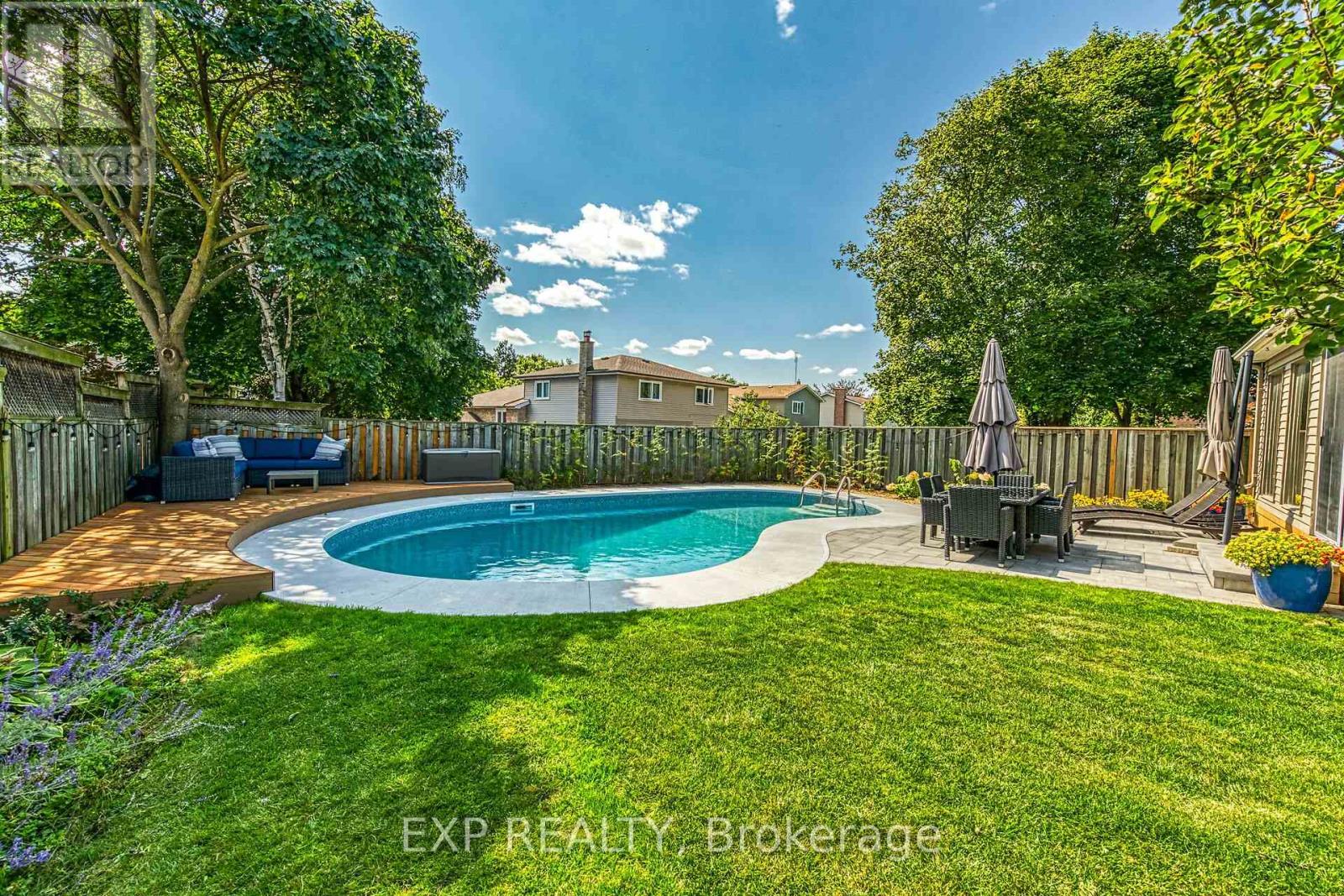 Welcome to this beautifully maintained family home in Milton's sought-after Timberlea neighbourhood, known for its great schools, parks, and welcoming community feel. Set on a quiet, child-friendly street where neighbours connect and kids play, this home offers the perfect setting to put down roots. Curb appeal shines with a four-car driveway, double garage with new garage door, and inviting front porch. Inside, the main floor features newly upgraded smooth ceilings with modern pot lights, creating bright, comfortable living spaces designed for everyday family life and entertaining alike. Enjoy a spacious living room, formal dining area, and cozy family room with fireplace, while the sun-filled 3-season sunroom offers the perfect spot to unwind while watching the kids enjoy the backyard. Step outside to your own summer retreat featuring a kidney-shaped in-ground pool with all new lines, brand-new surrounding concrete, and patio, and a new updated deck ideal for BBQs and gatherings, plus extra lawn space for kids and pets to play. The kitchen sits at the heart of the home, connecting seamlessly to the main living areas, while main floor laundry and a powder room add everyday convenience. Upstairs, the generous primary bedroom features a walk-in closet and private ensuite, while three additional bedrooms provide plenty of space for a growing family or home office needs. The partially finished basement offers additional living space, workshop potential, and storage ready to adapt as your family's needs evolve. A wonderful opportunity to own a move-in-ready home in one of Milton's most loved family communities. (42174009)