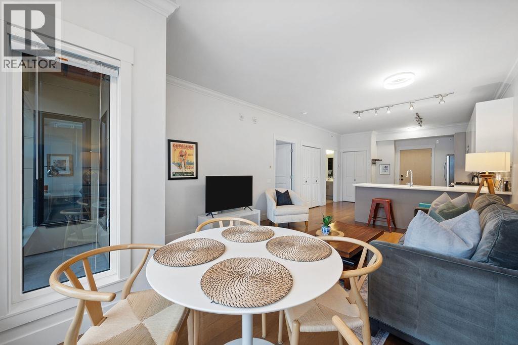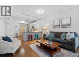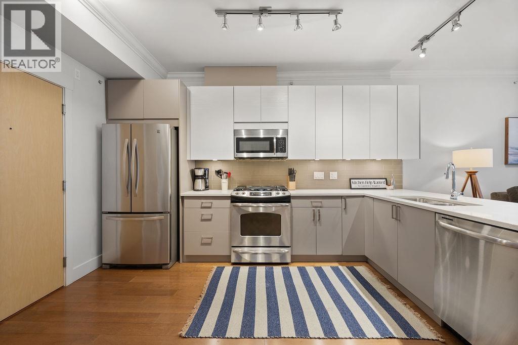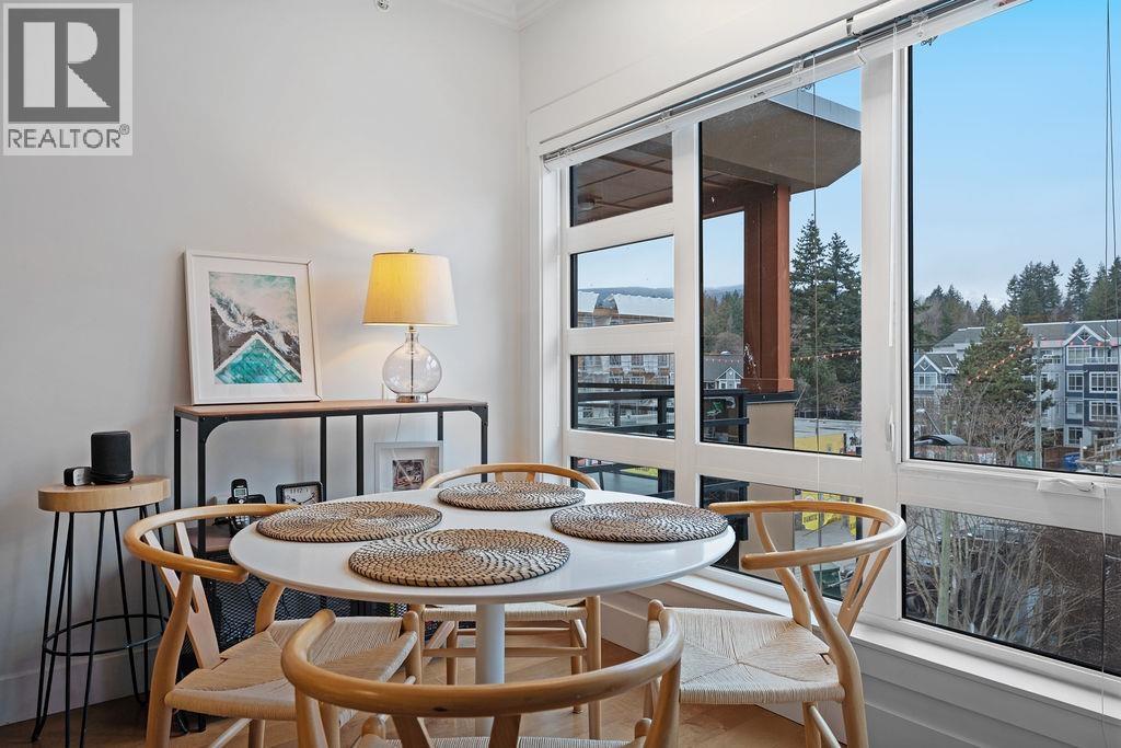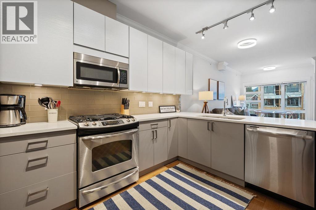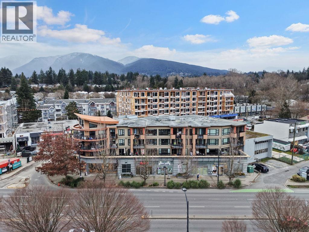 Fully renovated 1-bedroom penthouse at The Vue, quietly situated on the north-facing side with serene mountain views. This top-floor home offers 9´ ceilings, an open layout, and an unusually large 734 sqft. The spacious bedroom features a custom walk-in closet and office nook. Quality updates include premium engineered hardwood floors, quartz counters, custom wood veneer cabinetry, full-size stainless steel appliances, and a gas cooktop. Built with acoustical wall construction for enhanced soundproofing. Steps to Capilano Mall, transit, shops, dining, and trails. Heat and hot water included in strata fees. 1 parking, 1 storage locker, and shared bike storage. 2 pets allowed, rentals min. 30 days. Open house Sunday March 1st 2:30-4pm. (32466001)