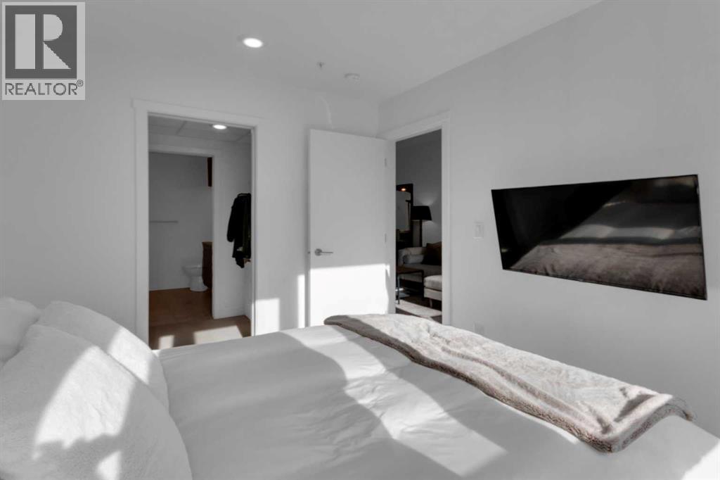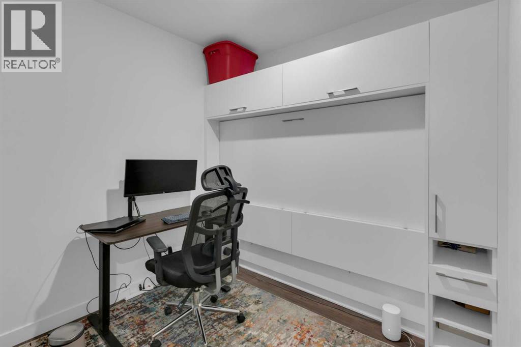 Experience refined inner-city living in this beautifully designed 2 bedroom, 2 bath condo in the heart of Bridgeland. Featuring a south-facing exposure overlooking green space, this home is filled with natural light while offering a peaceful outlook rarely found in urban settings.The contemporary kitchen is both stylish and functional, showcasing quartz countertops, and a full suite of Bosch appliances, complemented by a premium Fisher & Paykel refrigerator. Designed for both everyday living and entertaining, the open-concept layout seamlessly connects the kitchen, dining, and living areas, creating a bright and welcoming space.The primary bedroom features a spacious walk-through wardrobe leading to a private ensuite, along with thoughtfully designed built-in storage that enhances both functionality and organization. The versatile second bedroom includes a built-in Murphy bed, allowing the space to easily transition between a guest room and a dedicated home office. A generously sized in-suite storage and laundry room adds exceptional convenience, a rare and valuable feature in condo living.This well-managed, pet-friendly building provides an impressive array of amenities, including concierge services, a fully equipped fitness centre, spin studio, yoga and movement room, rooftop terrace with panoramic city views, pet-washing station, secure bike storage, car wash bay, visitor parking in the secure underground parkade, and inviting community gathering spaces.Ideally located in vibrant Bridgeland, you are steps from cafés, dining, fitness studios, boutique shopping, local markets, parks, and the Bow River pathway system. With quick access to downtown and the C-Train nearby, commuting is effortless while enjoying one of Calgary’s most walkable and character-filled neighbourhoods.An exceptional opportunity to enjoy stylish urban living paired with premium amenities and a sought-after location. (31661910)