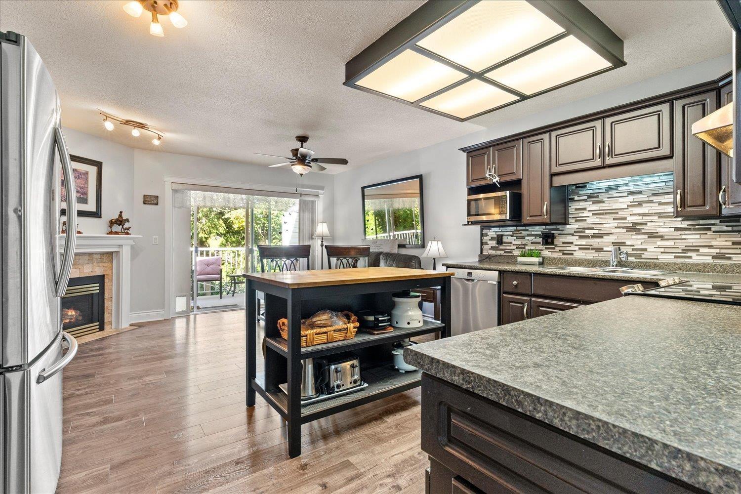 Welcome to Still Creek! This rancher with a basement sits on the largest lot in the complex, tucked in a quiet cul-de-sac and backing onto a serene greenbelt. With over 3,000 sq ft, this well-maintained home offers 4 beds and 3 baths, thoughtfully laid out for everyday living.The main floor features a roomy kitchen with island and s&s appliances, cozy yet functional living and dining areas, and the primary bedroom plus two additional bedrooms, with a balcony overlooking the trees. Downstairs, enjoy extra living space, a bedroom, and plenty of storage, with walk-out access to the patio. Complete with a double garage, newer roof, and a family & pet friendly, well-run strata, this home is close to schools, parks, shopping & transit. Offering space, comfort, & a real sense of retreat. (32465912)