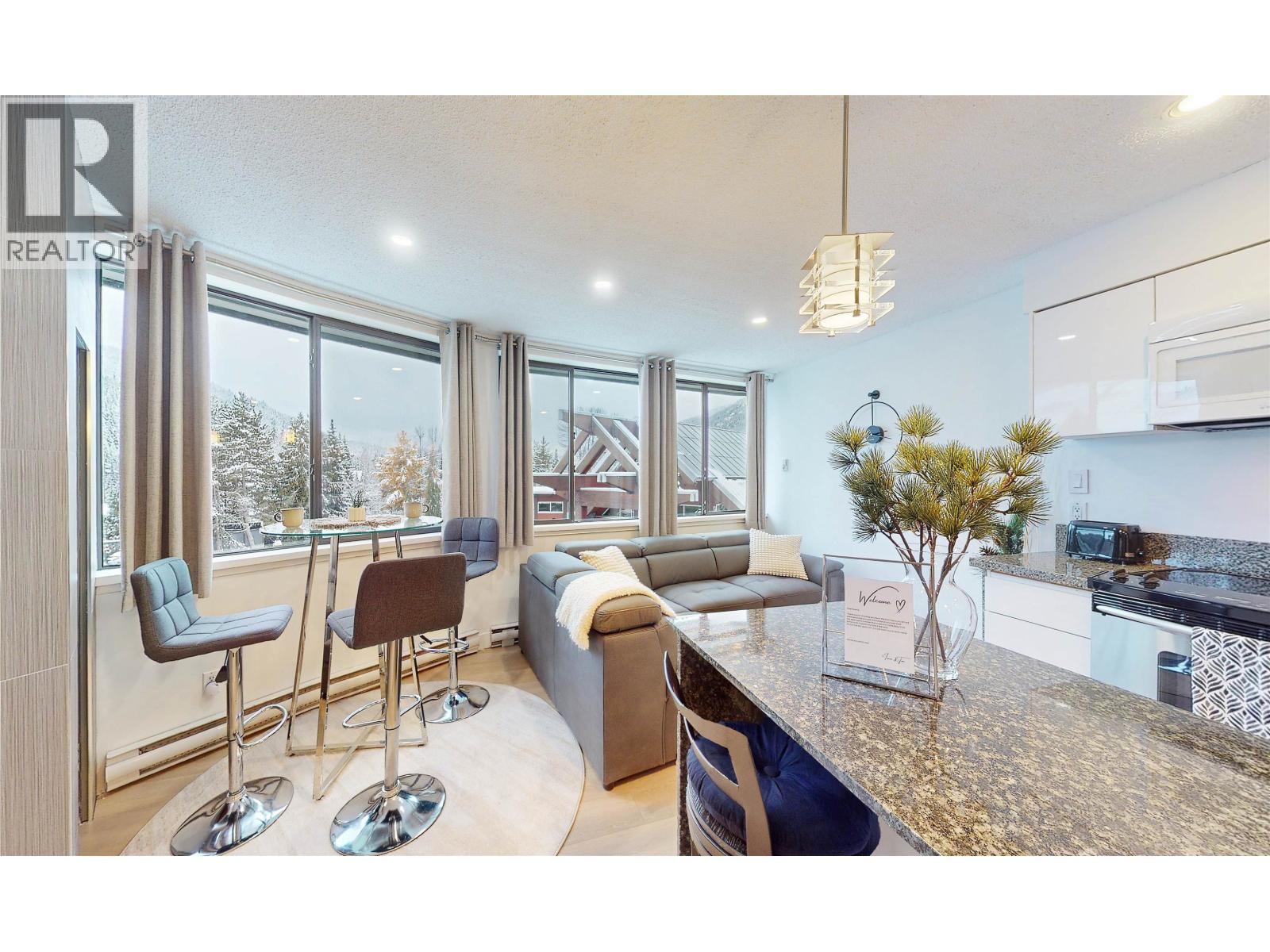 This beautifully renovated, furnished & equipped, super spacious 850 square ft one bedroom apartment in Windwhistle offers a prime location in Whistler Village, just steps away from ski lifts, restaurants, shops. Its wraparound windows not only flood the interior with natural light but also provide picturesque views of the mountains. The modern kitchen features stainless steel appliances and sleek granite countertops, adding a touch of luxury to everyday living. Furthermore, this property presents a great investment opportunity, boasting Phase 1 nightly rental zoning. This means it has the potential to generate substantial rental income while still allowing for unlimited owner usage. Very well run building, renovated common areas and new roof approved & paid in full. (32466361)