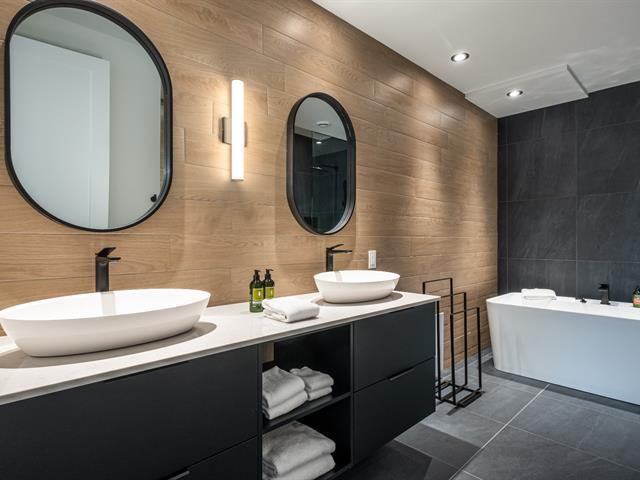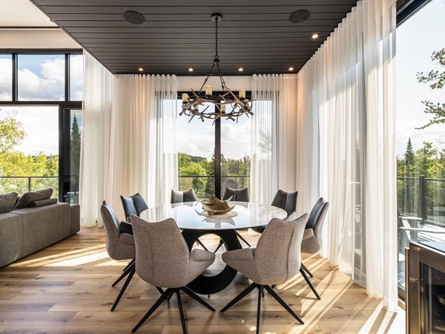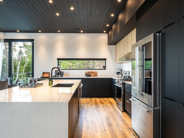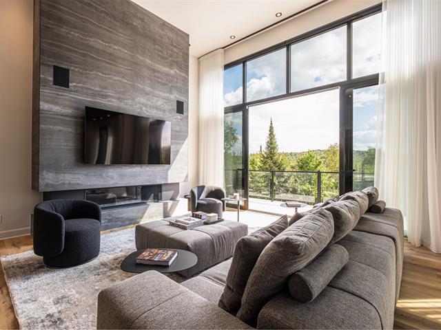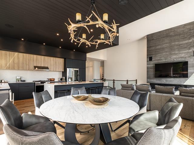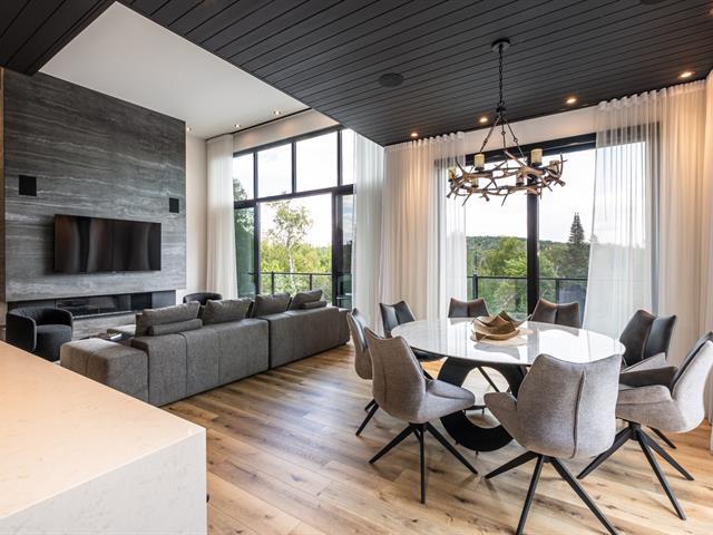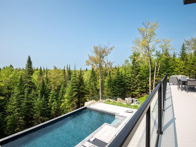 This remarkable newly built property captivates with its clean lines and generous windows that bathe the spaces in natural light. Nestled in the heart of a forest of mature trees, it offers breathtaking views of the region. Ideally located close to activities and Tremblant resort, it also generates excellent rental income. Vaulted ceilings, large open-concept rooms, 5 bright bedrooms, 5 bathrooms, a powder room, a locker room for sports equipment, and a garage complete this property. It offers an exceptional outdoor experience with its private pool, spa and pickleball court. GST/QST must be added to the asking price (57835802)