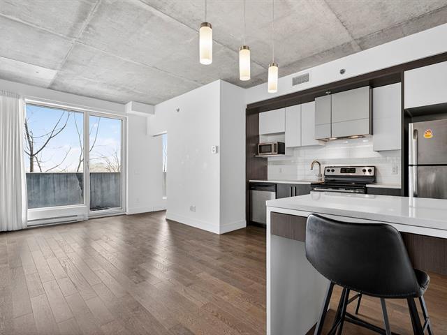 Located in the MUV project in Old Rosemont, this third-floor condo is perfectly suited to the lifestyle of young professionals looking for a modern, practical, and well-located space. The unit features a closed bedroom and a second windowless room that is ideal as a home office, creative studio, or spare bedroom. The open-concept living area maximizes every square foot and promotes a friendly atmosphere, perfect for entertaining colleagues and friends. A garage and storage space add significant value. Just steps away from trendy cafes, restaurants, shops, and public transportation. (40421897)
