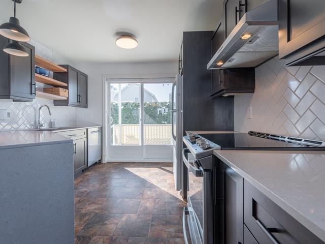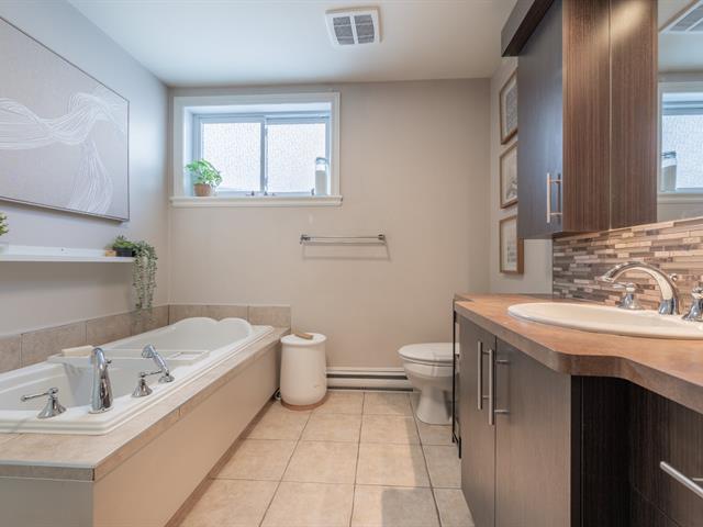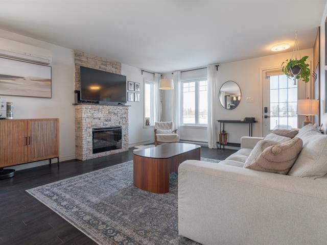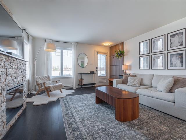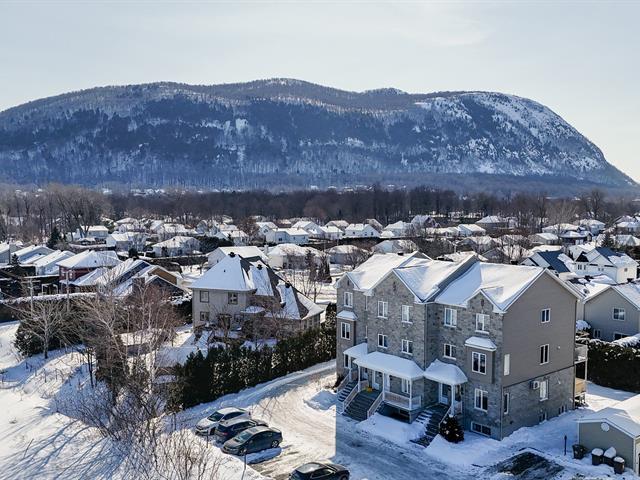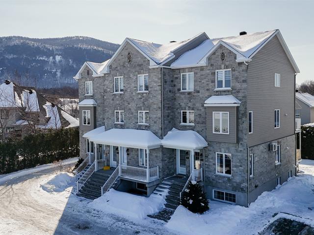 Spacieux et beau condo de coin sur 2 niveaux situé sur une rue privée en retrait du boulevard avec vue sur la montagne, aucun voisin en avant, 2 grandes chambres au sous-sol avec de grandes fenêtres, 1 salle de bain complète avec douche séparée, 1 salle d'eau/lavage au rez-de-chaussée pour plus de confort, espace lumineux à aire ouverte pour les pièces de vie, foyer électrique et unité d'air climatisé au RDC, cuisine avec beaucoup de rangements et grand comptoir en quartz, 2 stationnements très proche de l'unité, grande galerie arrière et accès à la cour, copropriété très bien gérée, facile à visiter ! (54703490)