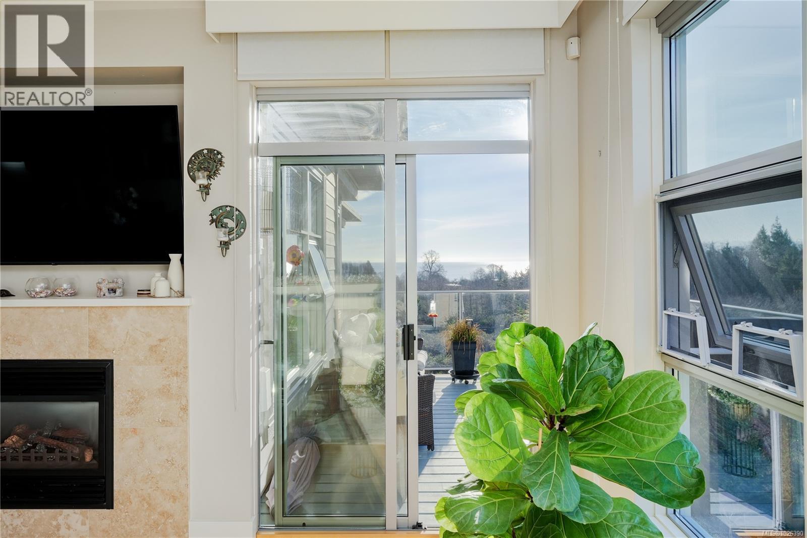 Experience breathtaking southwest ocean and mountain views from this rare penthouse offering in the coveted Ocean Grove community. Spanning over 800 sq. ft., this luxurious 1 Bedroom + versatile Den (with Murphy Bed) is flooded with natural light and features soaring ceilings, an open-concept layout, and a covered oversized balcony with double gas stubouts for BBQ and Firetable—perfect for entertaining, sunset cocktails, or quiet mornings immersed in stunning scenery. The chef-inspired kitchen boasts granite countertops, a dramatic waterfall island, premium stainless steel appliances, and a gas cooktop, blending elegance and functionality. A cozy gas fireplace anchors the living area, creating a warm ambiance for relaxing evenings. The spa-like ensuite offers heated tile floors, a soaker tub, and a separate shower, delivering a true sense of luxury and retreat-like comfort. Additional features include geothermal heating and cooling for year-round comfort, smart design for effortless living, and thoughtful finishes throughout. The versatile Den can serve as a home office, guest space, or creative studio, maximizing the penthouse’s functionality without compromising style. Enjoy the lifestyle perks of Ocean Grove—steps from Esquimalt Lagoon, pristine beaches, and scenic trails, while benefiting from low strata fees and a well-managed, professional strata. This is an exceptional opportunity to own a rare, top-floor penthouse with expansive views, luxurious finishes, and modern conveniences. Whether entertaining, working from home, or simply soaking in the natural beauty, listening to the waves or whale watching from the comfort of your home, this property embodies the pinnacle of West Coast luxury living Don’t miss your chance to experience a truly rare offering where privacy, views, and elegance converge—a penthouse that defines West Coast sophistication. (30402022)