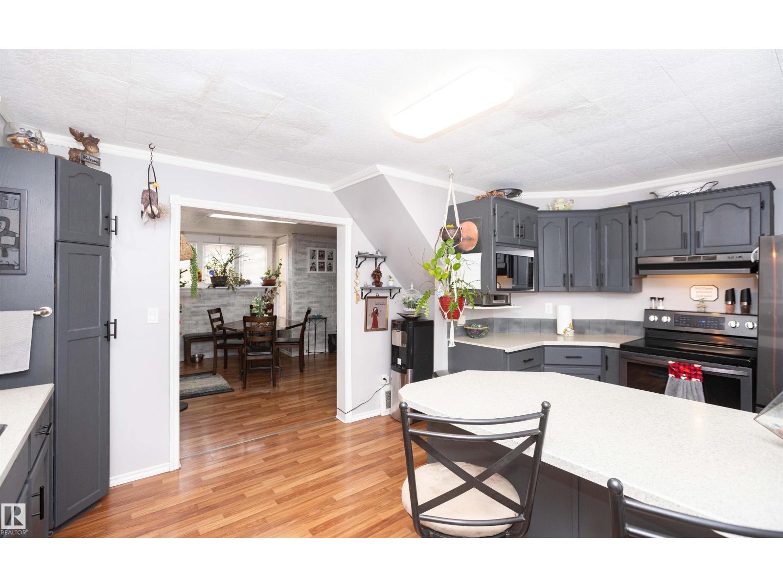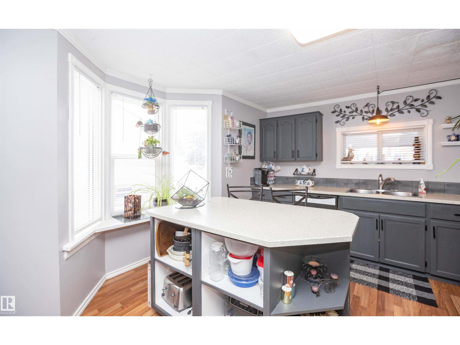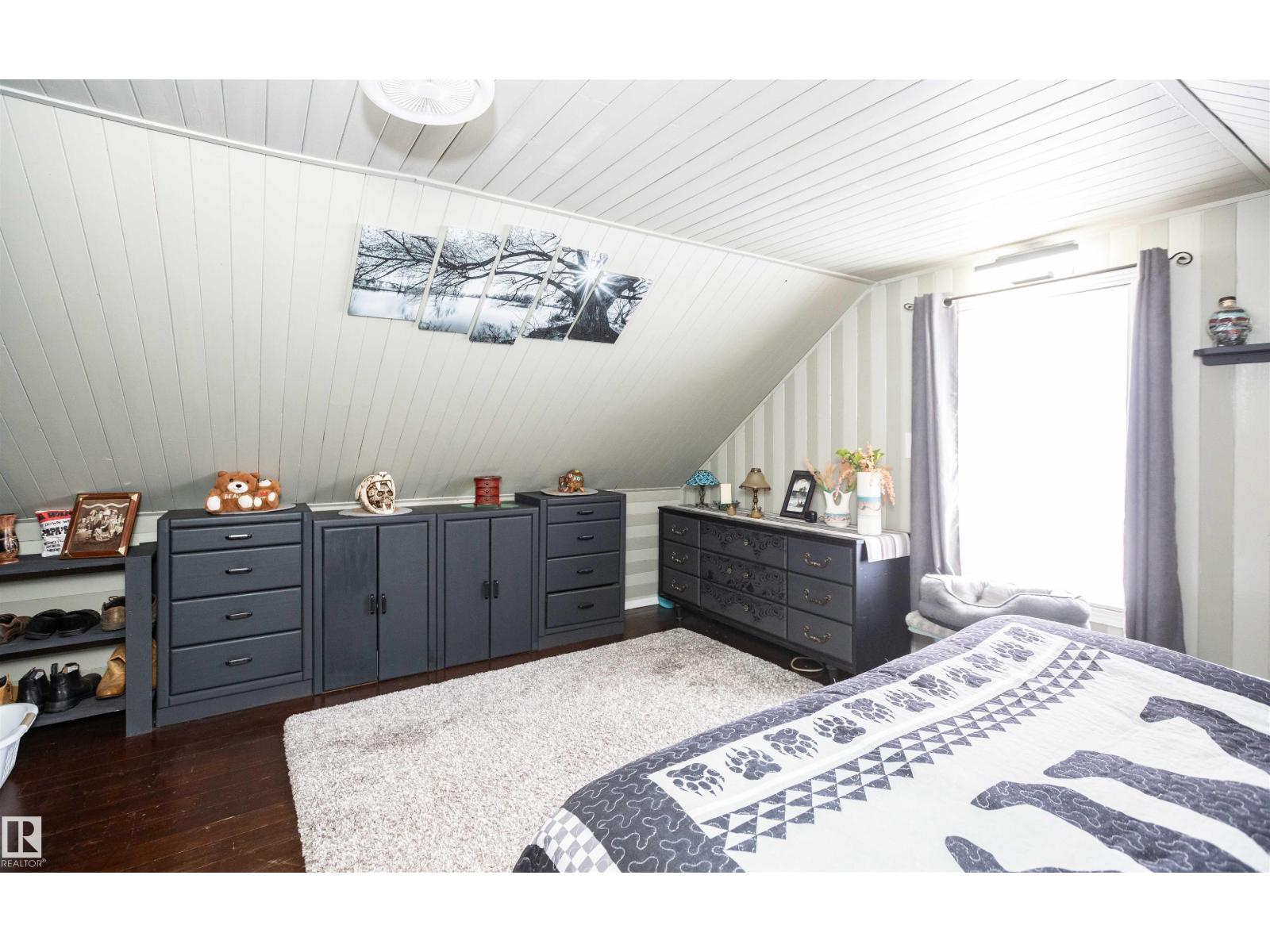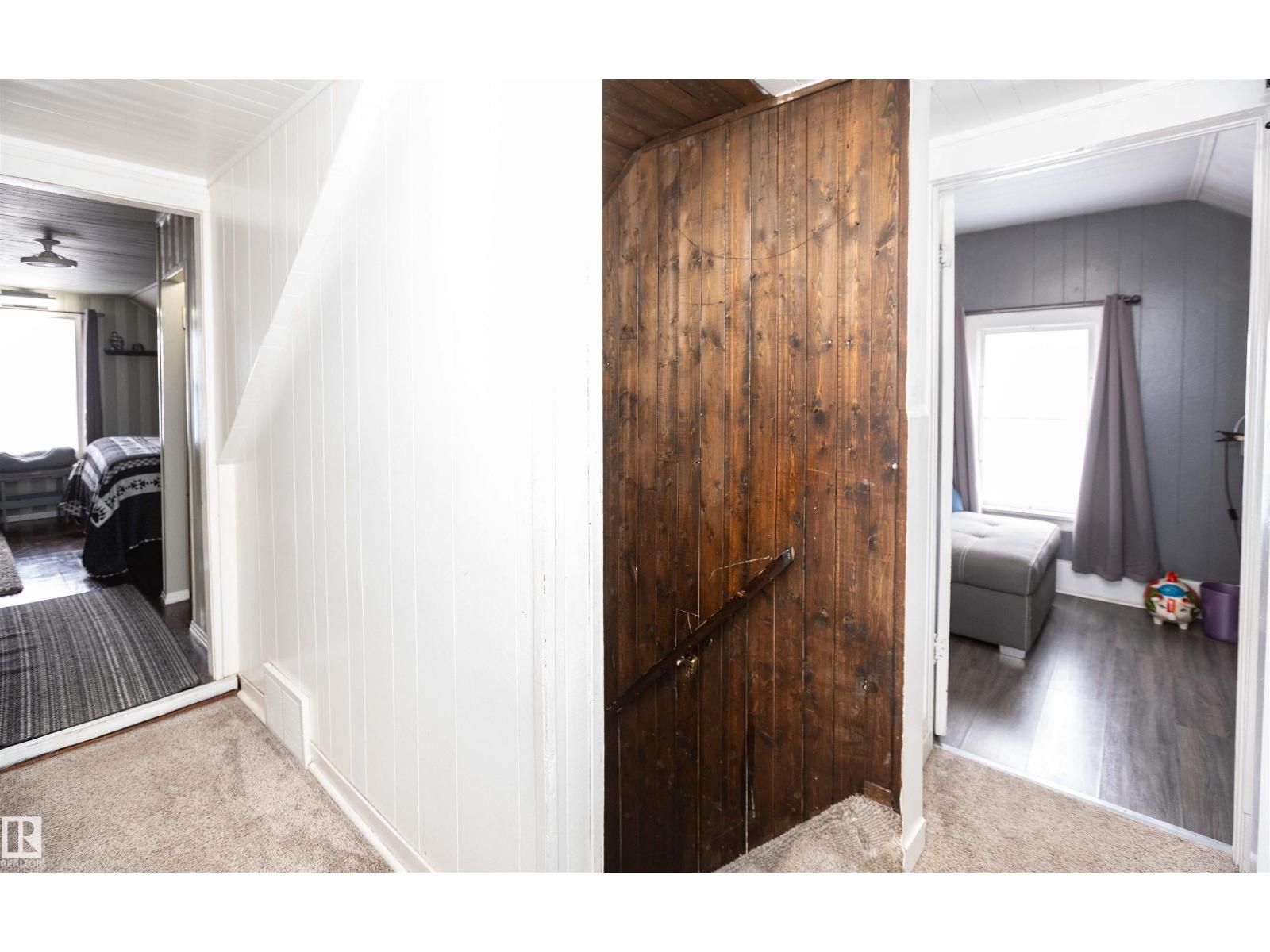 What a sweet treat this 1120 sq ft character home is. Downtown on a large lot there are plenty of upgrades - shingles 2017, furnace & hot water tank 5 yrs old, fridge & stove 2 yrs, new washer, new 2 pce half-bath on main floor, barn doors, upgraded main bath w/new tub & surround, new back deck the width of the home 2025, new large shed 2025. Covered, enclosed front entry perfect to sit & watch people stroll by. Lovely oak kitchen w/tons of cabinets, great appliances, lots of light, island w/stools & pop-up power outlet. Spacious dining area with east-facing window. Cozy living room w/cedar arched ceiling. Laundry rm to rear beside the mudroom. Upstairs are 3 bdrms (primary bdrm is huge), an upgraded bathrm & storage. The part bsmt is an unfinished room with storage & newer furnace/hot water tank. The property is fully fenced (some is new) with a dble door opening at rear to bring in your RV, boat or car.. Two large sheds & tarp shed/garage?. Driveway is long enough for 3 vehicles. (33850271)