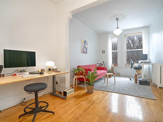Stunning 3-bedroom condo in the heart of the Plateau, directly facing Parc Lafontaine. Located in a beautiful century-old building, this spacious unit of approximately 1,400 sq. ft. offers exceptional character and remarkable natural light thanks to its open views and generous windows on three sides. Superb open-concept living space combining the kitchen, dining room, and living room. Prime location within walking distance of all shops and essential services. A visit will charm you! Walk Score: 99 | Bike Score: 100 (57816991)