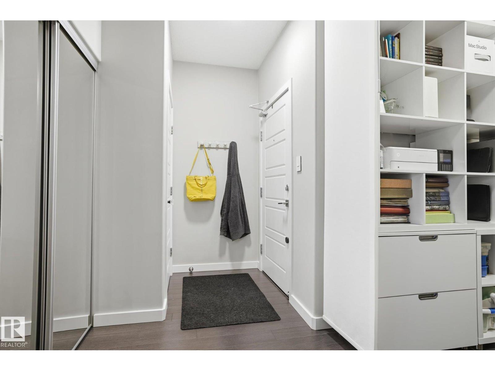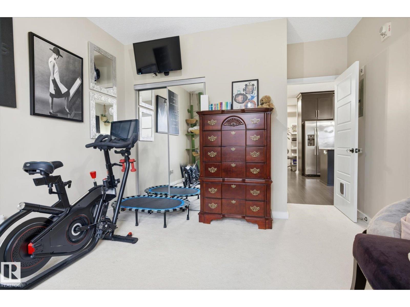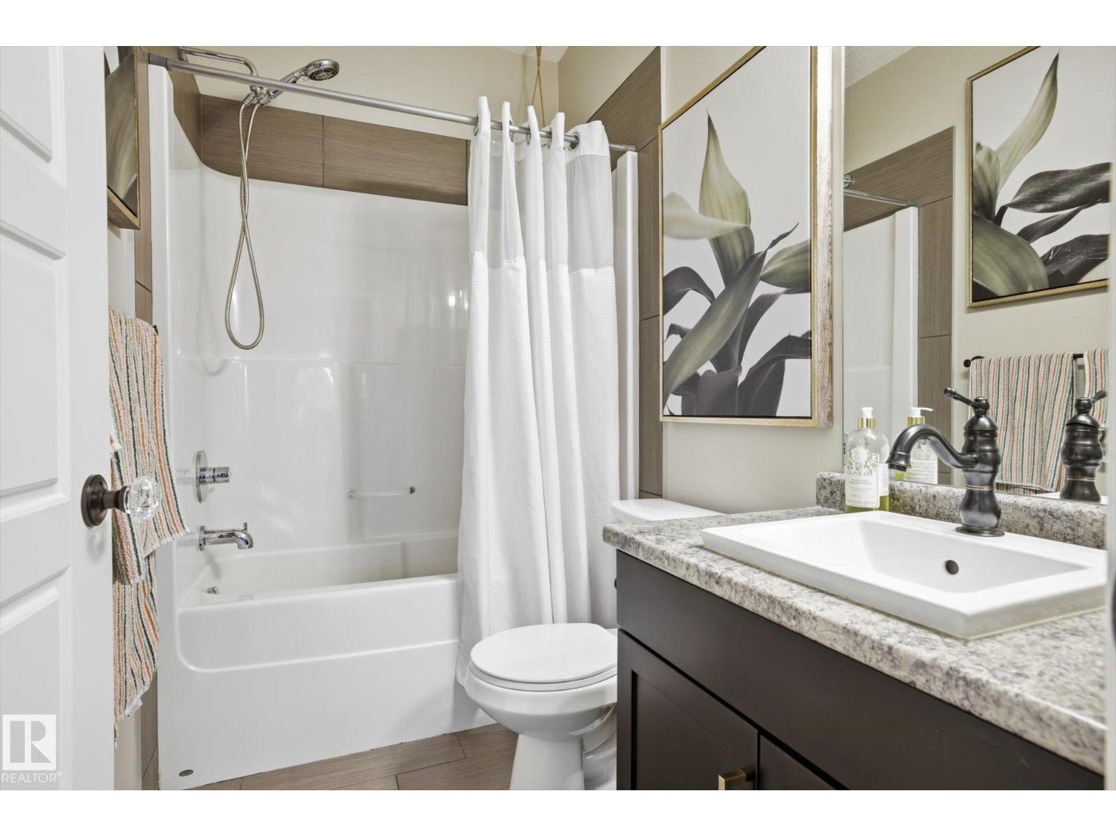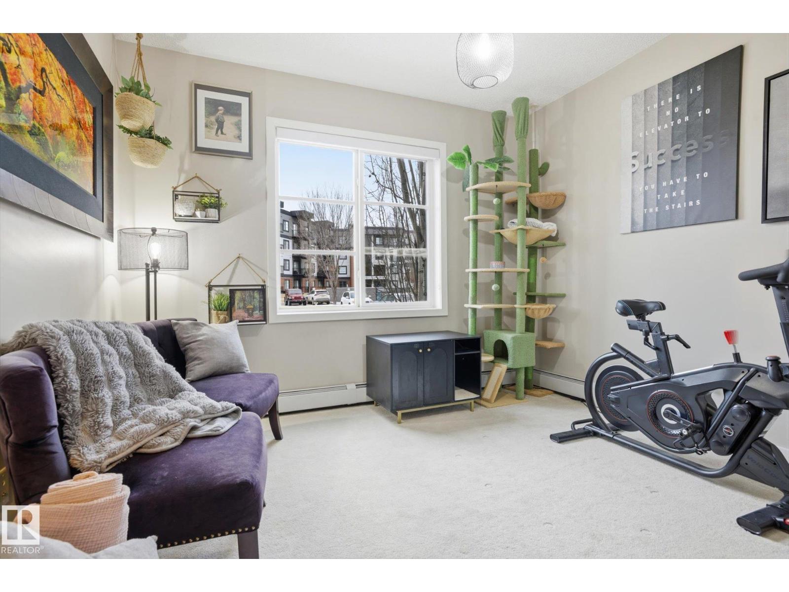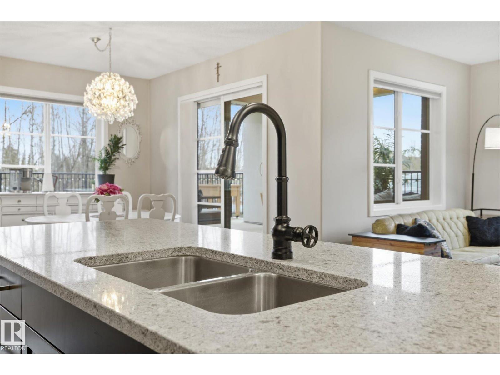 SHOWSTOPPER 1st FLOOR CORNER UNIT with RAVINE views and an underground parking stall! Welcome to Elan by Carrington Communities—an upscale condo backing onto peaceful green space. This 1,070 sq/ft unit features 2 spacious bedrooms, 2 full baths, in-suite laundry, and plenty of in-unit storage plus an additional storage locker. Natural light floods in through extra windows in this bright, open layout with 9' ceilings, stylish laminate and tile flooring, to-the-ceiling cabinets, upgraded stainless steel appliances, and a massive kitchen island. The primary suite impresses with a custom barn door to the walk-in closet and 3pce ensuite. Step onto your massive corner patio with a ravine views, covered area, a gas line for your BBQ and plenty of room to entertain. Amenities include a fitness centre, party room, boardroom, and visitor parking. Prime location near trails, schools, South Common, Anthony Henday, Hwy 2, Edmonton International Airport, shopping, & more. Don’t miss out! Exceptional value - a 10/10! (33850718)