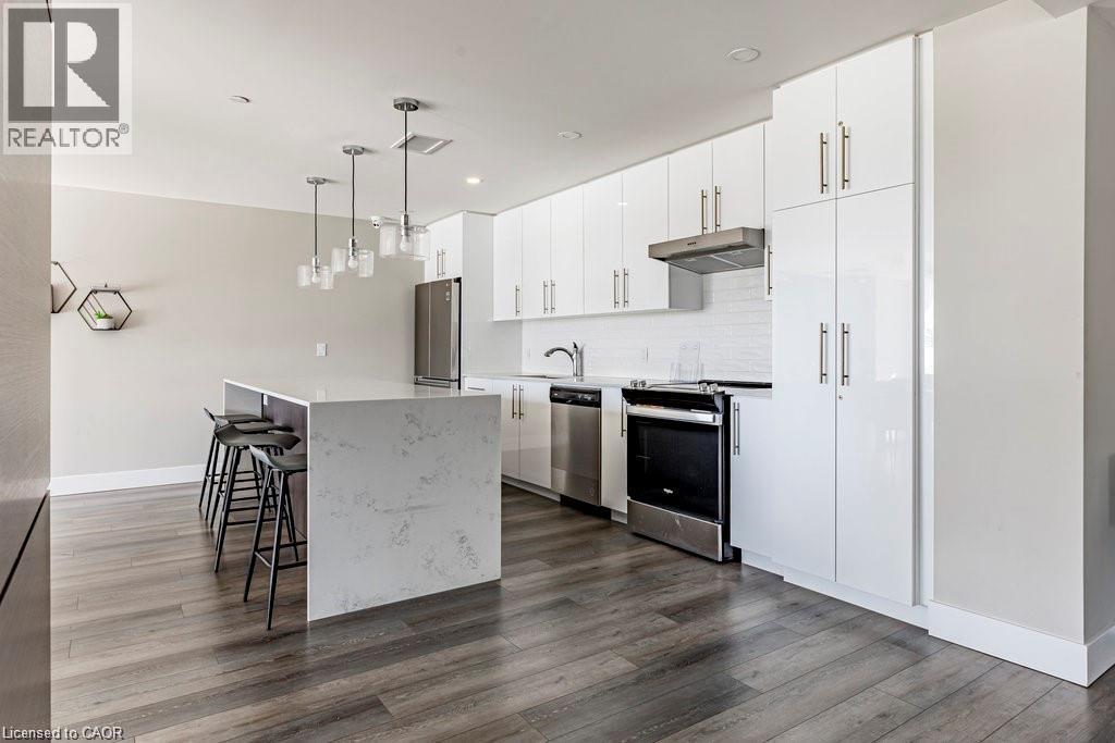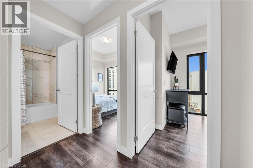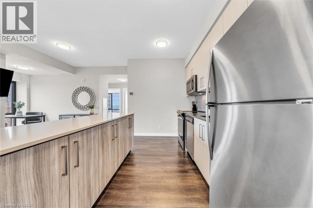 Welcome to unit #807 at Platinum Condos in the Heart of Hamilton. This “Zurich” model is 894 square feet featuring 2 Bedrooms + Den and 2 full bathrooms. Walking into the foyer of the unit you have a large closet as well as your stackable washer and dryer. Off the foyer you have your open concept floor plan featuring your kitchen with large island and stainless-steel appliances. This is open to your living room with sliding glass doors that lead out to your private terrace. Off the living room and kitchen, you have a den/workspace or a dining area. The primary bedroom features large windows looking out to Lake Ontario as well as a 3-piece ensuite. The second bedroom is at the corner of the unit, so you have windows facing Lake Ontario as well as Dundas Peak. Off the second bedroom you have a 4-piece bathroom. Platinum Condos is just steps to Hess Street, Locke Street, James Street, restaurants, coffee shops,, public transit, and all other amenities. (70179707)