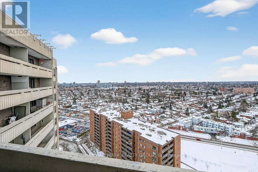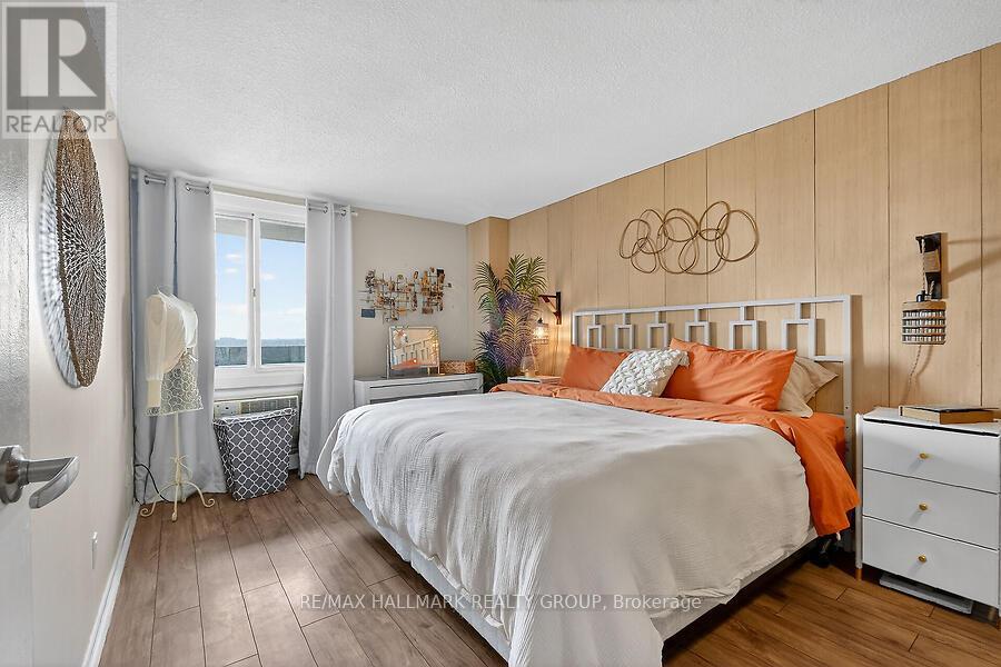 Perched on the 25th floor with breathtaking views of Ottawa's skyline. Discover this beautifully renovated, meticulous 2 bedroom condo in Ottawa's established Ambleside community, offers the perfect blend of luxury, comfort and convenience. Featuring a spacious open -concept layout, a stunning sunken living room with faux brick wall highlighted by the electric fireplace, wood floors, updated kitchen overlooking a seamlessly into the bright & open dining/living, perfect for everyday living or entertaining. Bathroom is totally updated as well. Large windows overlook mature trees, and a private balcony provides a peaceful setting to enjoy your morning coffee or unwind at the end of the day. Residents enjoy a rich calendar of activities including clubs & social events. Bridge, game night, exercise, swimming, knitting, monthly parties). First class amenities include an indoor salt water pool, sauna, gym, car wash bay, beautifully appointed party room w/ full kitchen, squash courts, library, work shop, & guest suites for visitors. Condo fees offer exceptional value and include heat, hydro, water, reserve fund, and caretaker services. Step outside to explore scenic pathways along the Ottawa River Parkway, or take a short walk to nearby shops & restaurants, all while enjoying the perfect balance of riverside living and urban convenience. Take advantage of the nearby Ottawa River walking trails just a short stroll away. With a future LRT station right at your doorstep, commuting will be effortless. The building boasts a warm, friendly community and the unit includes the rare bonus of a private EV charge- making this exceptional condo a standout opportunity in ever way. (42178544)