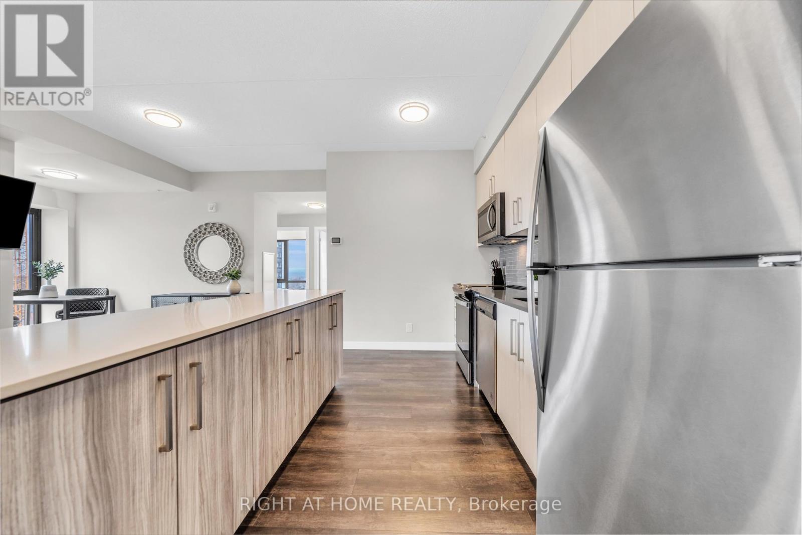 Welcome to unit #807 at Platinum Condos in the Heart of Hamilton. This "Zurich" model is 894 square feet featuring 2 Bedrooms + Den and 2 full bathrooms. Walking into the foyer of the unit you have a large closet as well as your stackable washer and dryer. Off the foyer you have your open concept floor plan featuring your kitchen with large island and stainless-steel appliances. This is open to your living room with sliding glass doors that lead out to your private terrace. Off the living room and kitchen, you have a den/workspace or a dining area. The primary bedroom features large windows looking out to Lake Ontario as well as a 3-piece ensuite. The second bedroom is at the corner of the unit, so you have windows facing Lake Ontario as well as Dundas Peak. Off the second bedroom you have a 4-piece bathroom. Platinum Condos is just steps to Hess Street, Locke Street, James Street, restaurants, coffee shops,, public transit, and all other amenities. (42179221)