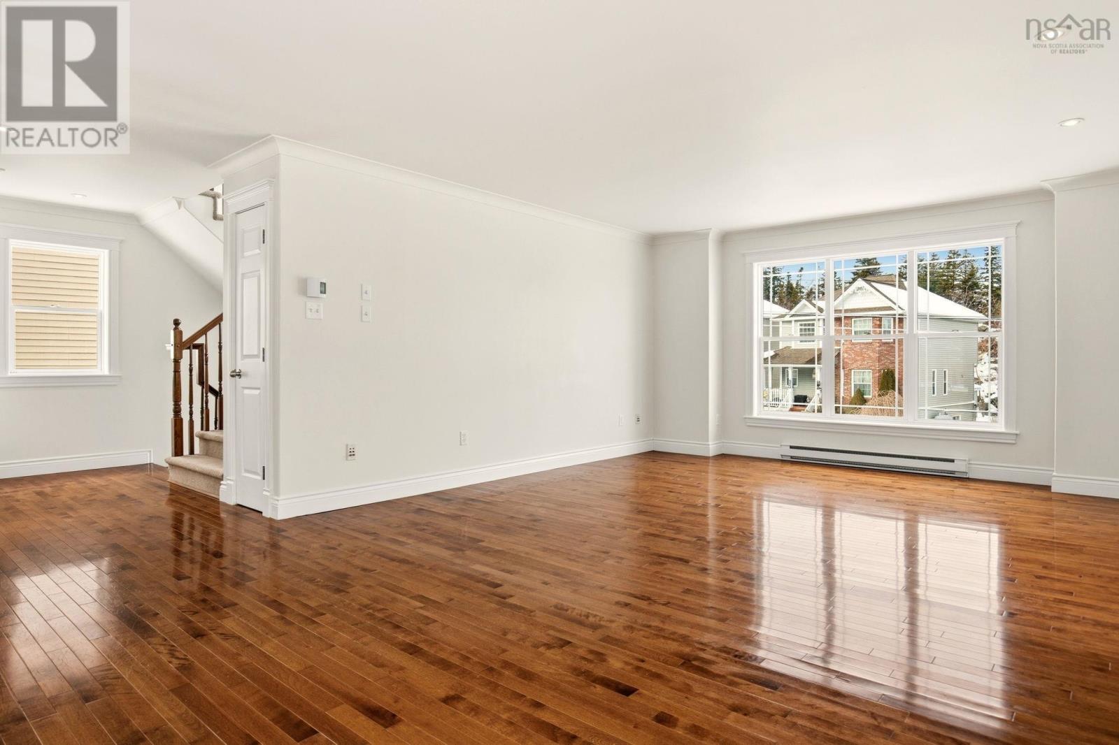 Welcome to this beautifully maintained 3 bedroom, 4 bathroom home in the highly desirable Royale Hemlocks community. Situated on a fully fenced lot close to schools, parks, and everyday amenities, this property offers the perfect balance of comfort and convenience being under 30 minutes from Downtown Halifax. Inside the bright and spacious main level is filled with natural light and showcases gleaming hardwood floors, oversized windows, and elegant crown moulding. The kitchen features custom oak cabinetry, stainless steel appliances, and ample counter and storage space. The open concept layout flows effortlessly into the inviting living room with a cozy propane fireplace, along with a convenient powder room for guests. Upstairs, youll find 2 generously sized bedrooms, a charming balcony, and an impressive primary suite complete with a walkin closet and spa inspired ensuite. This move-in-ready home combines space, style, and locationan exceptional opportunity in one of Halifaxs most sought-after neighbourhoods. (231980575)