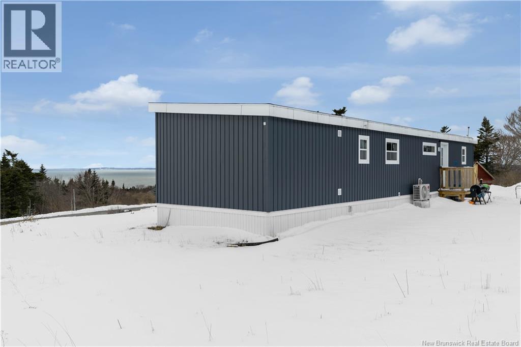 Enjoy the ideal seaside lifestyle with this Maple Leaf Home 16 x 60 mini home, perched 350 feet above Sea level, offering unparralelled views. Perfectly located in a quiet area just minutes from the Bay of Fundy. Surrounded by a diverse migrating bird population and located just down the road from a century old lighthouse, this property is a dream for nature lovers and outdoor enthusiasts. ATV trails nearby connect directly to the Fundy Trail system, offering endless adventure right from your doorstep. Set on a 1-acre lot with a gravel driveway, this one-level home offers 2 bedrooms and 2 bathrooms, with panoramic views from the glass wall to wall windows. Simply spectacular! Outside, enjoy a 4 person hot tub wired and ready for your enjoyment! PLUS - 220V electrical is in place for EV charging. With remaining home warranty and the option for a quick closing, this could be the opportunity to enjoy coastal living in a peaceful setting you've been dreaming of. (29511270)