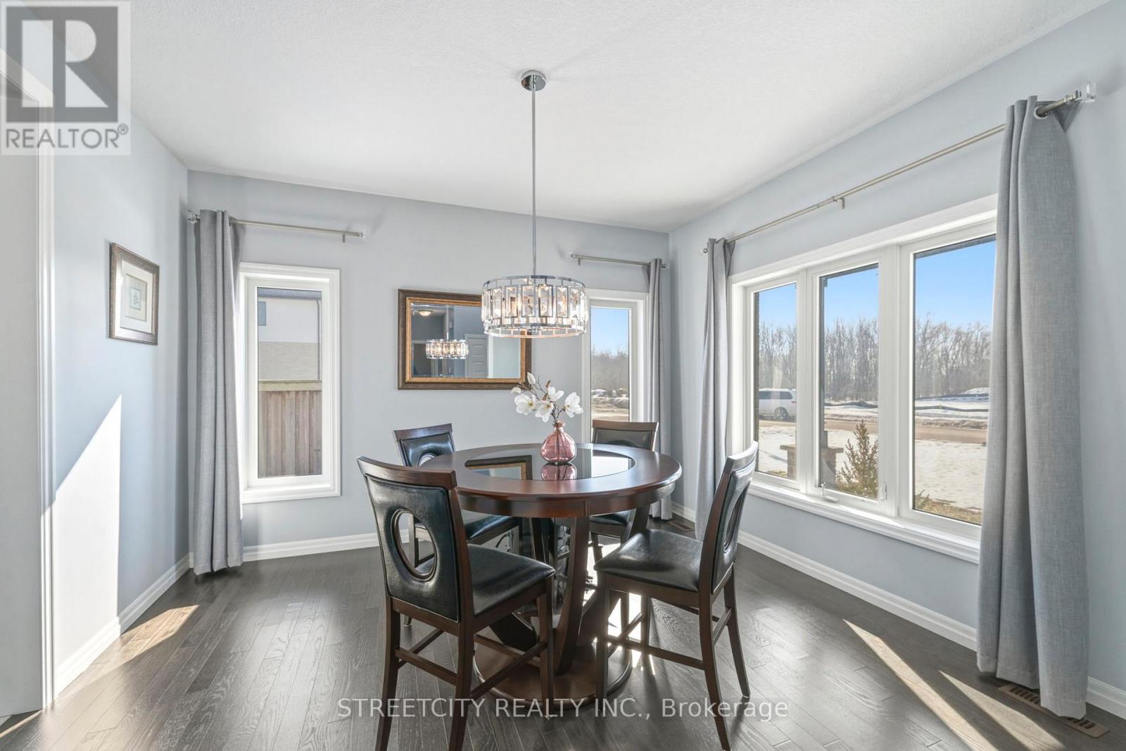 Step inside this bright and beautifully 2018 Marquis-built home, thoughtfully designed with family living in mind. The welcoming foyer features a grand vaulted entry and 9-foot ceilings on the main floor, creating an airy, open feel from the moment you arrive. The spacious dining area flows seamlessly into the eat-in kitchen, complete with abundant cabinetry, a walk-in pantry, and plenty of space for busy mornings or entertaining friends and family. The family room offers a gas fireplace and large bright windows overlooking the expansive backyard - a true highlight of this property. With ample space for a future pool, gardens, and endless outdoor fun, this yard is ready to grow with your family. Upstairs, you'll find three generous bedrooms, including a spacious primary retreat featuring a 5-piece ensuite with a soaker tub, walk-in shower, and large walk-in closet. The unfinished lower level provides incredible potential, already roughed-in for an additional bathroom and offering high ceilings and 3 large egress windows ideal for future bedrooms or in-law suite possibilities. There's plenty of room for a play area, home gym, or recreation space tailored to your family's needs. Located on a quiet street just steps from the Rail Trail, Timberwalk Pond, parks with a playground and the Ilderton arena, this home offers the perfect blend of small-town charm and everyday convenience. Situated in the welcoming community of Ilderton, you'll enjoy local favourites like the annual fall fair, Santa Clause parade, artisan markets, arena, boutique shops, and restaurants - all while being just an 8-minute drive to North London. Opportunities like this are rare - newer homes with lots of this size in such a sought-after, family-friendly neighbourhood don't come along often. You'll love calling this one home. (42179850)