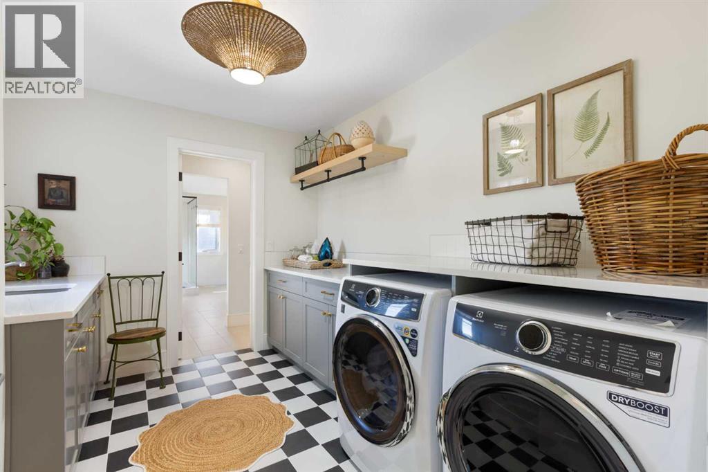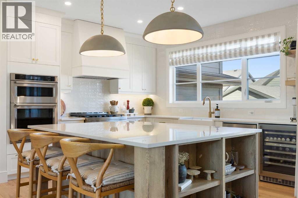 Welcome to this exceptional executive family home, perfectly positioned on one of the premier wide lots in the vibrant and thoughtfully designed community of Alpine Park, facing directly onto Orchard Green, a beautiful park featuring fruit trees, open play spaces, a community garden, and a Harvest Table for gatherings and picnics, offering a rare combination of privacy, scenery, and lifestyle. Set on an impressive 60 ft wide lot, the property enjoys peaceful park views from the front deck, living room, family room, and primary bedroom, with mature trees providing natural privacy, and offers over 3,600 sq ft of developed living space across three levels, showcasing outstanding craftsmanship and upgrades throughout while presenting like a builder’s showhome with the warmth and functionality of a true family home. Upon entry, you are immediately struck by the attention to detail and thoughtful design, with a bright main floor living room featuring large south-facing windows and a stunning floor-to-ceiling stone gas fireplace, flowing seamlessly into the heart of the home, a beautifully appointed kitchen with crisp white cabinetry, large island, stainless steel appliances, built-in oven, expansive north-facing window, and walk-in pantry. The spacious dining area is ideal for hosting large gatherings and features sliding patio doors leading to the upper deck and landscaped, fenced yard, along with a shaded lower patio perfect for summer relaxation. A stylish two-piece powder room and generous home office with park views and private deck access provide both convenience and versatility, while a custom-designed mudroom with closet and bench with lift-up storage completes the main level. The second level is a private retreat featuring a spacious family room with large park-facing windows, a unique bridge leading to the primary suite with expansive south-facing windows and a sliding barn door into the luxurious ensuite with dual vanities, large walk-in shower with dual shower heads, and elegant soaker tub. The custom walk-in closet connects to a well-appointed laundry room with folding counter and built-in sink, while two additional generously sized bedrooms and a five-piece main bathroom complete this level. The fully developed basement offers excellent additional living space with a large rec room ideal for teens, guests, or movie nights, a fourth bedroom, and a four-piece bathroom, plus rough-in plumbing for a future wet bar and an oversized utility and storage area for exceptional organization. The double attached garage is oversized in height, allowing for the potential addition of a vehicle lift or extra storage. Facing directly onto parkland, this home offers a quiet, traffic-free setting where you can relax on the front deck, enjoy your favorite beverage, and watch children play, delivering the perfect balance of luxury, comfort, and community-focused living in one of Calgary’s most exciting new neighbourhoods. (31664836)