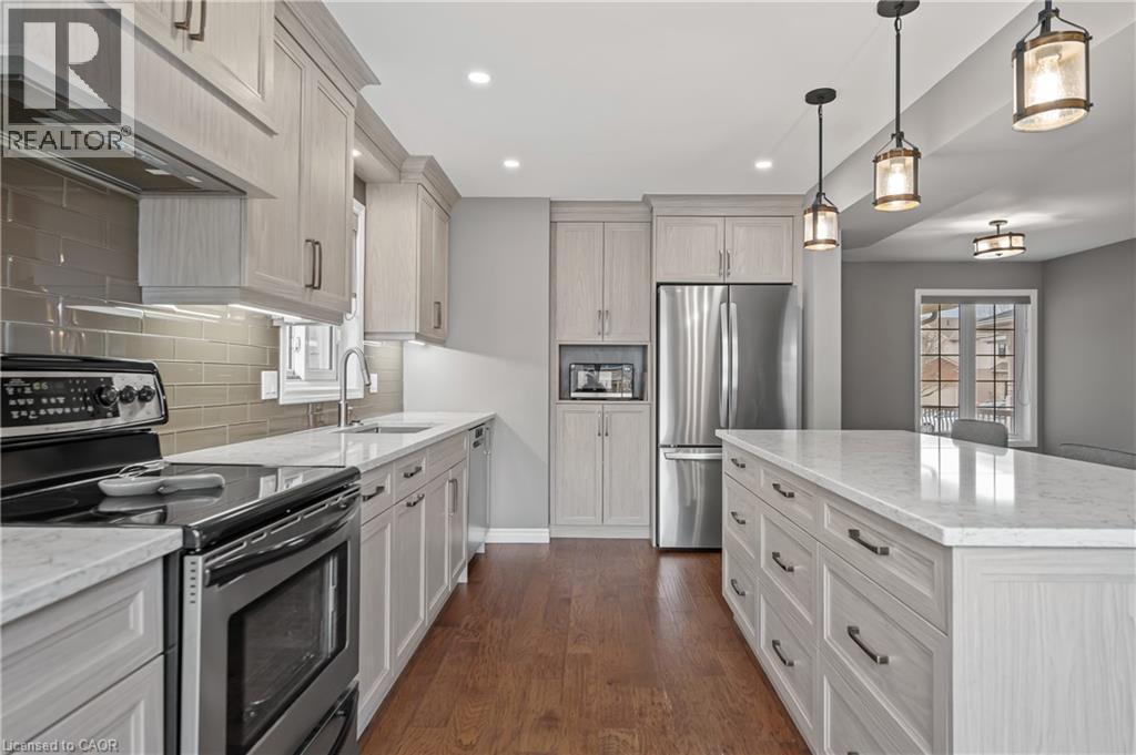 Welcome to this beautifully renovated 3 bedroom, 3.5 bathroom home offering 2,489 sq ft of total finished living space in a desirable East Galt neighbourhood. Close to top rated schools, parks, and amenities. Main and second floors feature engineered hardwood and premium tile throughout. Open concept layout with updated kitchen complete with quartz countertops and large island overlooking the dining and living areas. Upper level includes spacious family room with gas fireplace. Primary bedroom features walk in closet and private ensuite. All bathrooms updated with modern finishes. Fully finished basement provides additional living space ideal for rec room, office, or guest area. Oversized attached single garage (1.5) double driveway, and quality upgrades throughout. Move in ready. Book your showing today! (70183270)