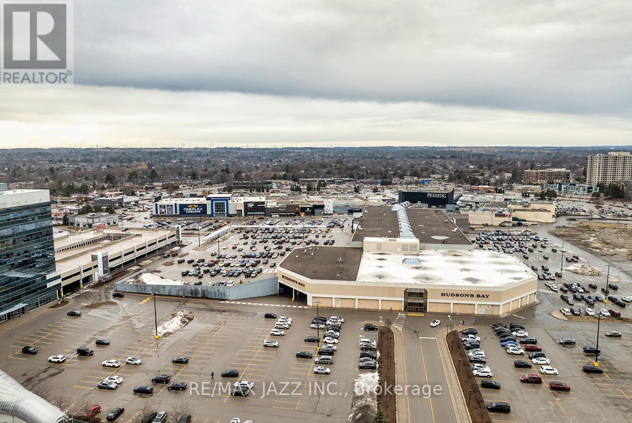 Opportunity knocks! Welcome to Universal City condos. This bright and modern Penthouse suite features 1 bedroom + den and 2 full bathrooms. The open concept layout boasts 10ft ceilings and a desirable southwest exposure, flooding the space with natural light and offering stunning views of Lake Ontario. The spacious primary bedroom includes a 3-piece ensuite, a walk-in closet with organizers, and breathtaking views. The versatile den can easily serve as a second bedroom or home office. Stylish upgrades throughout the suite include: kitchen cabinets, appliances, countertops, flooring, motorized blinds and more. Enjoy the convenience of an ensuite laundry, and owned dedicated locker and parking space. The resort-style amenities include an outdoor pool with cabanas, a fully equipped fitness center, a tranquil yoga room and a rooftop terrace with BBQs. The party room, complete with a full kitchen and pool table, is perfect for entertaining. Plus, 24/7 security ensures peace of mind. Ideally located just steps from the Pickering GO station, with easy access to Highway 401, top-rated schools, Pickering Town Center, Pickering Casino Resort, Frenchman's Bay, grocery stores, restaurants and more. This Penthouse truly has it all; a perfect blend of comfort, convenience and sophistication in one of Pickering's most sought-after communities. A must see! (42180744)