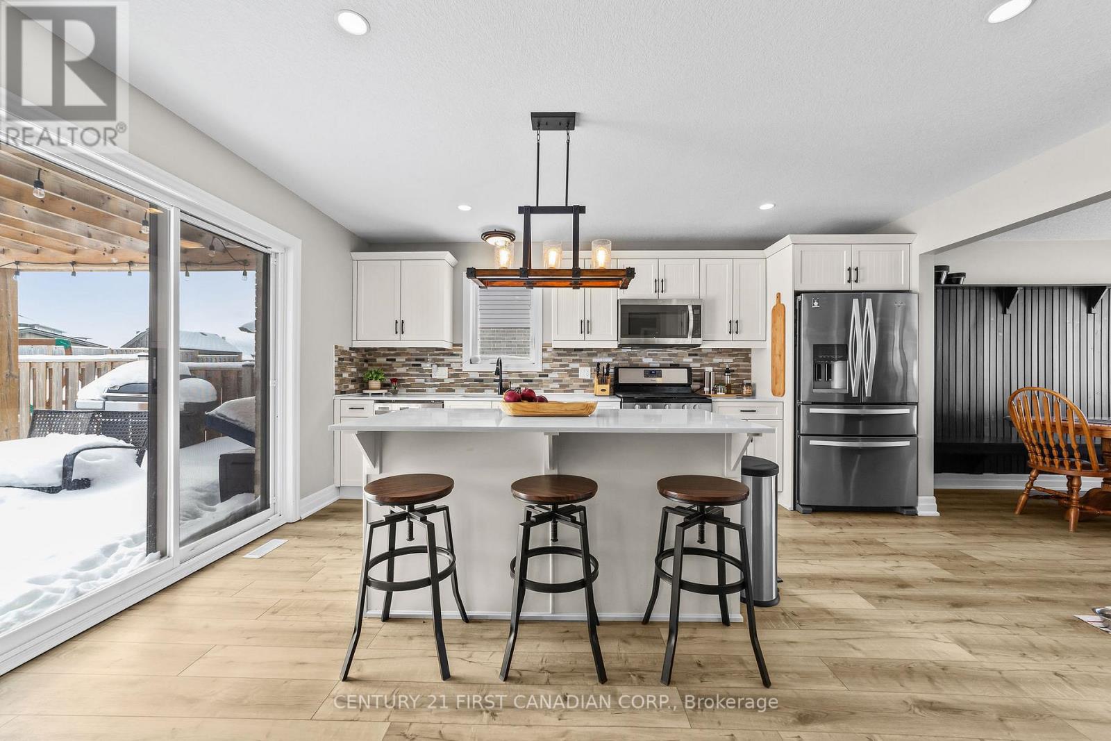 Located in the Town of Lucan, in the Ridge Crossing subdivision, this custom-built home offers a functional layout with space for the whole family. Featuring 4+1 bedrooms and 3.5 bathrooms, the home provides a traditional floor plan with defined living areas throughout. The main level includes a family room with a gas fireplace, a separate dining room, and a kitchen with quartz countertops, a pantry, and a large island overlooking the backyard. The primary bedroom is conveniently located on the main floor and includes a walk-in closet and an ensuite bathroom. Upstairs, you'll find three additional bedrooms, a loft area suitable for a home office or play space, and second-floor laundry. The basement adds extra living space with a rec room and an additional bedroom, ideal for guests or flexible use. The fully fenced backyard features a deck, stamped concrete, and armour stone landscaping. An attached two-car garage provides parking and storage. Conveniently located close to Wilberforce Public School, future soccer fields, and local amenities. Approximately 20 minutes to North London and 30 minutes to Grand Bend and the shores of Lake Huron. Recent updates include new luxury vinyl plank flooring on the main level and new carpet on the second level. (42180801)