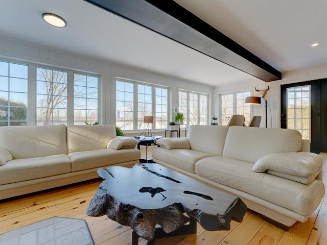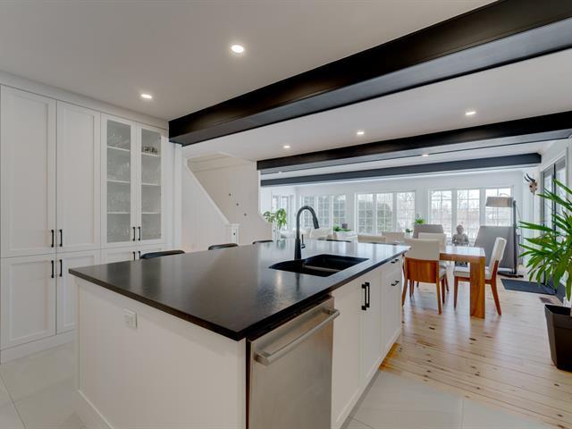 Discover this exceptional property on the banks of the Richelieu River, a true haven of peace on a vast lot of over 22,000 sq ft. This warm, renovated home offers breathtaking panoramic views of the water. Cooking enthusiasts will appreciate the spacious open-concept kitchen with its granite island and walk-in pantry. Relax in the in-ground, heated pool, surrounded by landscaped grounds, ideal for barbecues and gatherings. Dock your boat for easy access to water sports. A unique opportunity not to be missed! (53671278)