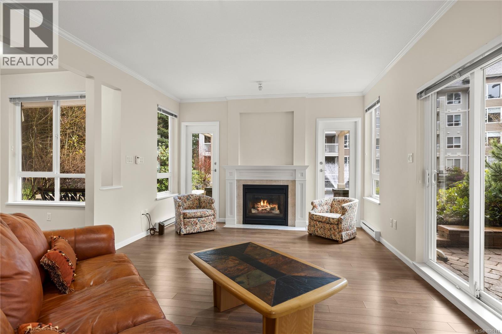 The Stonecroft Building in the Longwood community is set in one of North Nanaimo’s most sought-after neighbourhoods — and Unit 101 truly stands out. This bright ground-level home offers nearly 1,500 sq ft of thoughtfully designed living space, featuring two spacious primary bedrooms, each with its own ensuite and walk-in closet — ideal for privacy and comfort. Two gas fireplaces create cozy gathering spaces, while three separate patios overlook the tranquil pond and gardens, offering seamless indoor-outdoor living. The galley kitchen is well-appointed with stainless steel appliances, a pantry, and gleaming quartz countertops. Convenience is unmatched: two underground parking stalls are located close to your entrance, allowing step-free access directly into your home. An oversized storage locker is located on the second floor for added functionality. Through a secured gate, you’re just steps to Longwood Plaza, shopping, restaurants, and the Oliver Woods Community Centre. The Longwood community is known for its welcoming atmosphere and active lifestyle. Residents enjoy a private clubhouse complete with a gym, billiards room, kitchen for hosting events, and guest suites available at a nominal rate. Pets are welcome. Peaceful surroundings, exceptional amenities, and effortless living — this is the lifestyle Longwood is known for. (30404543)