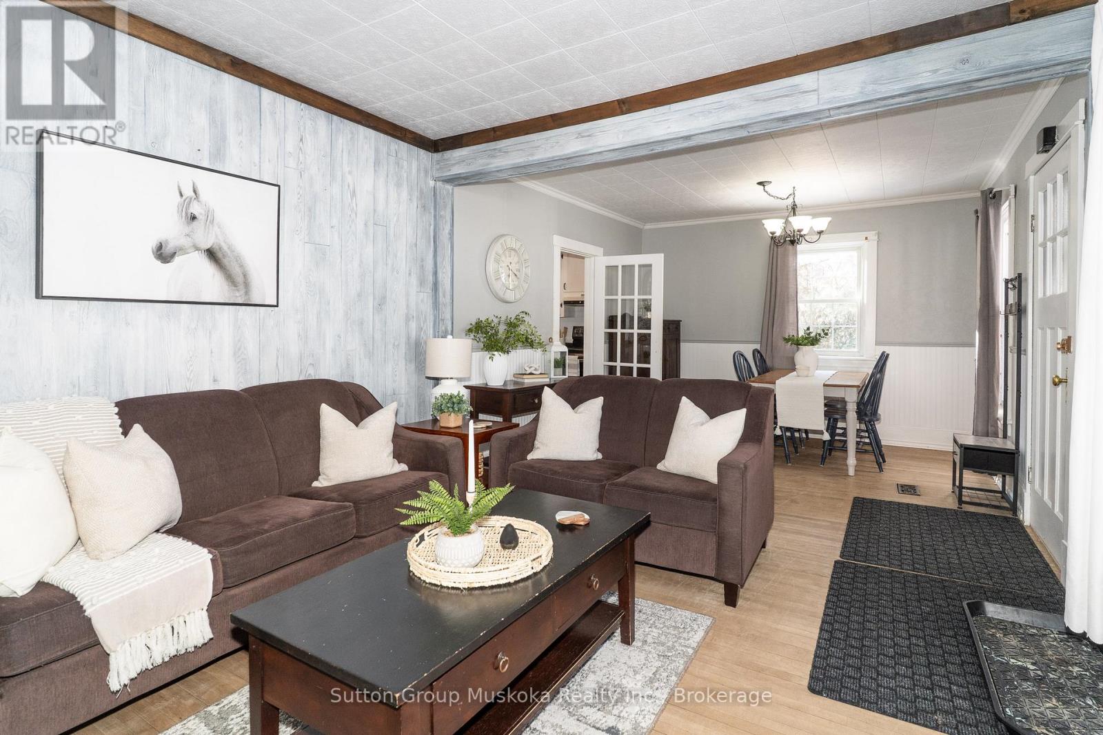 What a wonderful offering in the scenic village of Burks Falls. This location offers so much for a family or a couple starting out. Despite being a village , Burks Falls offers an arena, walking trails, dining, grocery store, pubs and a bowling alley. This home shows so well with a front porch to enjoy the summer evenings, a main floor bedroom, a great family room at the back of the house that leads to the back deck and firepit. You will love the hardwood floors in the home and gorgeous old doors. The upper level could be set up for an amazing Master bedroom with its own sitting room/full washroom including a claw tub AND its own private deck overlooking the backyard. The upper level is currently used as 2 bedrooms. Many older homes lacked closets. Not this one. The foundation is very solid and is great for storage . Forced air gas and central air finish off this great listing. Come take a look and you will love what this home offers. (42181537)