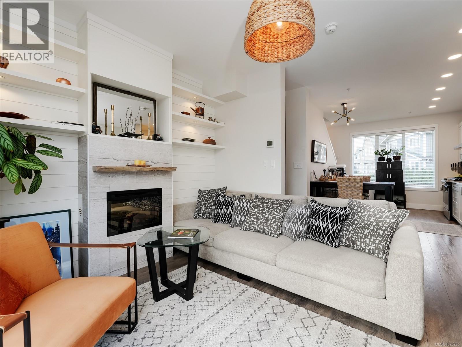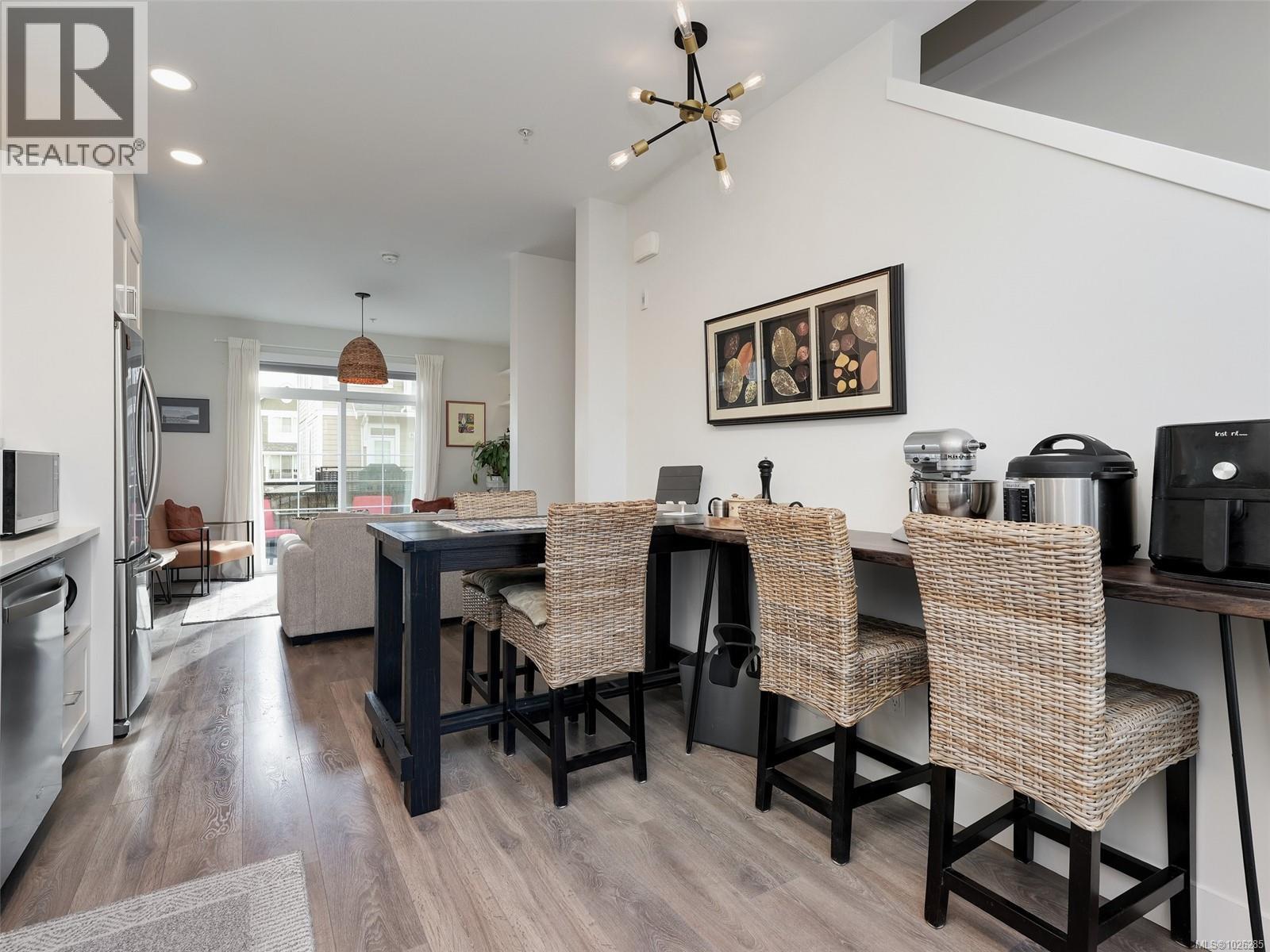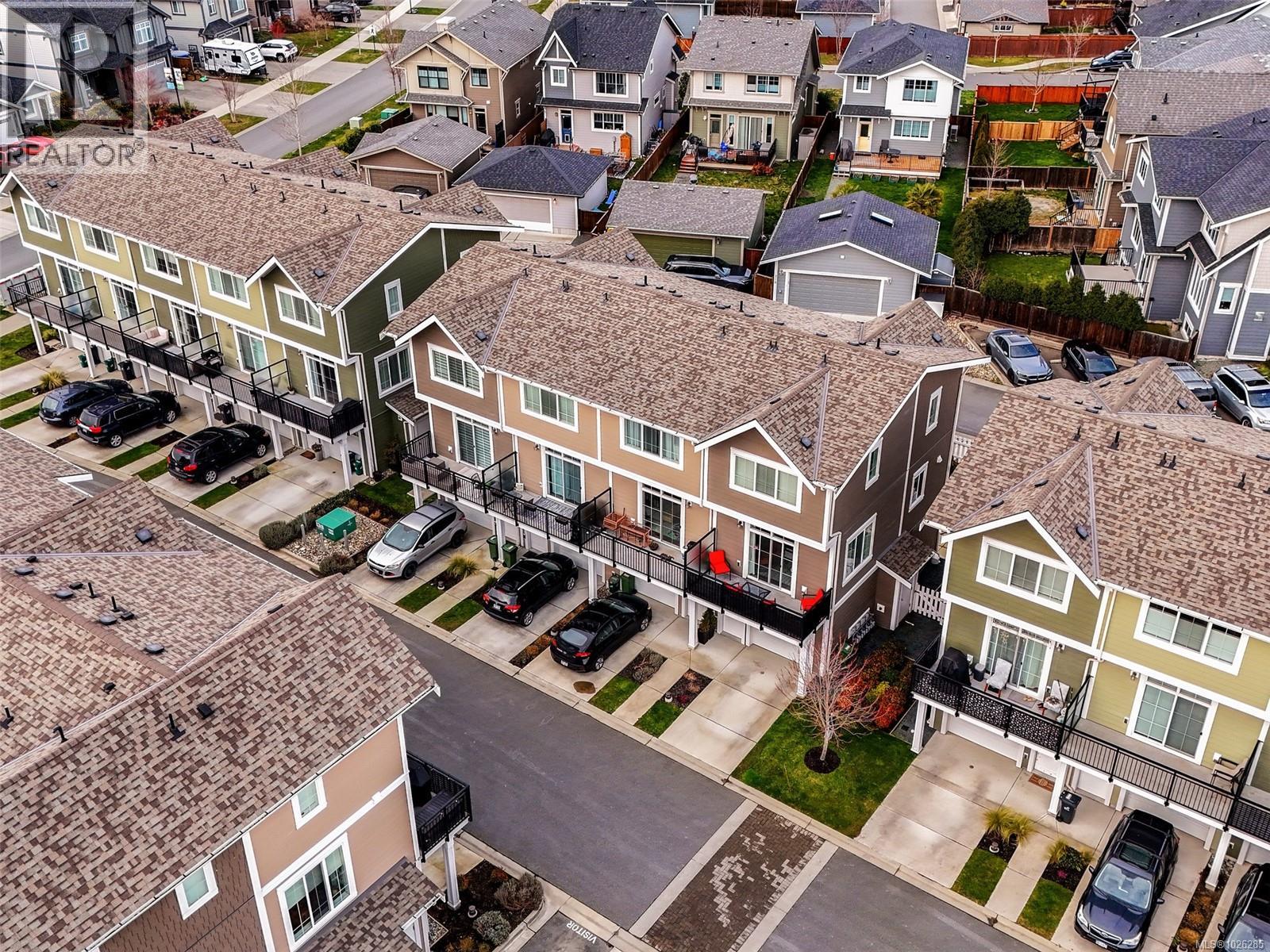 ESTWelcome to Compass - 165, 3501 Dunlin St - Seaside living in this awesome townhome in Royal Bay. Tucked away from the busy streets, you'll love this quiet, like new, 1098 sq ft END UNIT, WEST facing, Sunny and Brite 2-bed, 3-bath home. West Coast Designed, you'll feel warm & welcome with Tons of natural light throughout the open concept living area with 9' ceilings, custom blinds & modern finishes. The impressive main floor kitchen is complete with 4-burner gas stove, Shaker cabinets & SS appliances. Upstairs, both bedrooms have their own private & full Ensuite baths.Features include a large single garage used as a Media Room + parking space outside, Gas furnace, hot water on demand, sunny south facing balcony & white picket fence with yard to greet you at the front entrance. Centrally located in the Royal Bay community that includes playgrounds, a short walk to the beach, walking Trails around Royal Bay new schools & Quality Foods, Starbucks all enhance the Village lifestyle. (30405285)