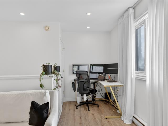 Bright and spacious top-floor corner condo featuring an open-concept living area filled with natural light. Offers 2 large bedrooms, a generous living room, and a functional kitchen with updated finishes. Bathroom and flooring tastefully renovated. Indoor garage and sunny balcony. The wiring and infrastructure for an electric vehicle charging station are already installed and will remain (charger not included). Located in a sought-after LaSalle area near Angrignon Park, metro, REM, schools, services, and quick access to Highways 15 and 20. Self-managed co-ownership with low condo fees. (51143159)
